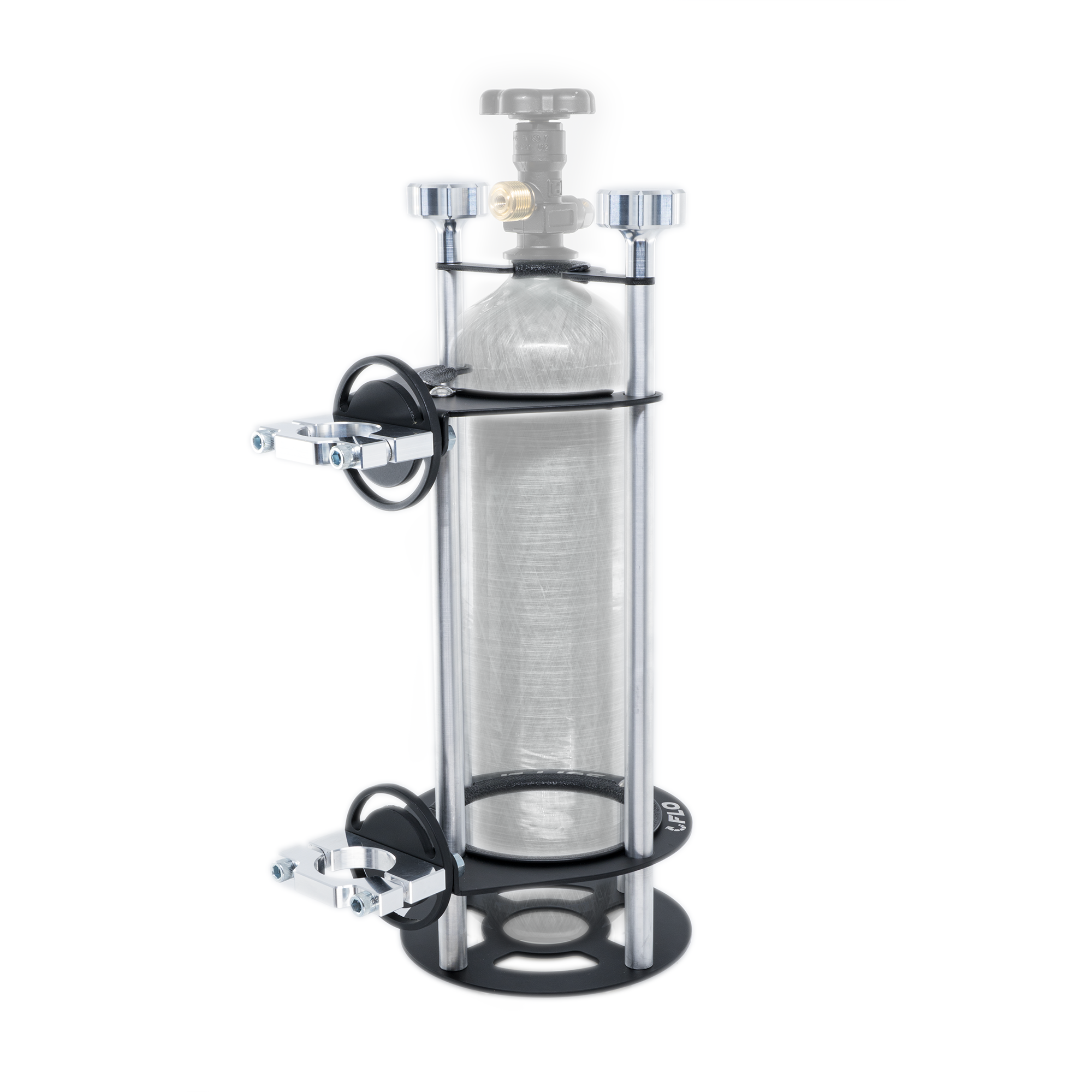 The Race-Light Bottle Bracket series is designed to provide a light weight, ridged mounting option for Composite 4.5lb C02 Bottles.
