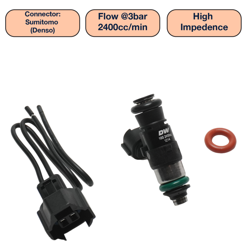 DeatschWerks Universal 2400cc Single Fuel Injector / 34mm Length / 14mm O-Ring Seals
