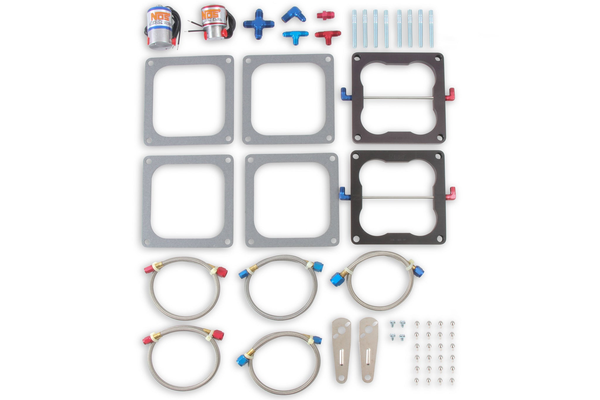 The Pro-Shot Fogger upgrade kits take your Pro-Shot Fogger system and converts it into a two stage Pro-Shot Fogger 2 kit. The dual stage feature allows the user to jet the first stage for traction off of the line, then in the second stage utilizing a Cheater spray bar plate, add maximum mid-range and top-end power. Through testing, NOS has optimized the jetting of the Pro-Shot Fogger 2 upgrade kits for improved power and performance. Available in single four or dual four applications in either a Holley® Square Flange or Holley Dominator® bolt pattern, the Pro-Shot Fogger 2 upgrade kits come complete with NOS new improved Cheater nitrous and fuel solenoids, Cheater spray bar plate(s), jetting and all the necessary hardware to upgrade your Pro-Shot Fogger into a dual stage Pro-Shot Fogger 2 system.