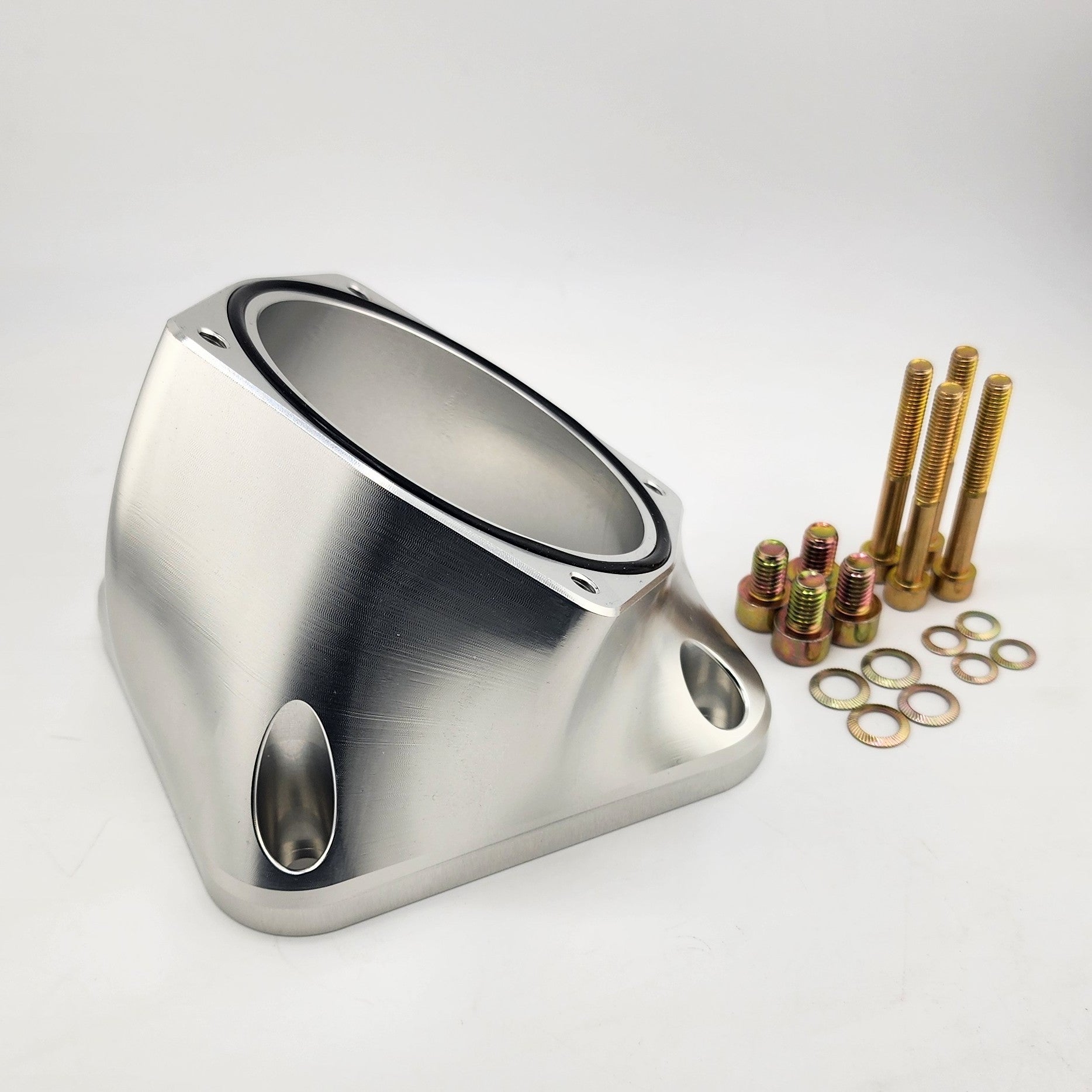 These adapters are built for engines where the installation of the manifold creates limited space to install a DBW adapter and throttle body. They have a 33.3 degree angle from the manifold flange to help get your piping started in the right direction.