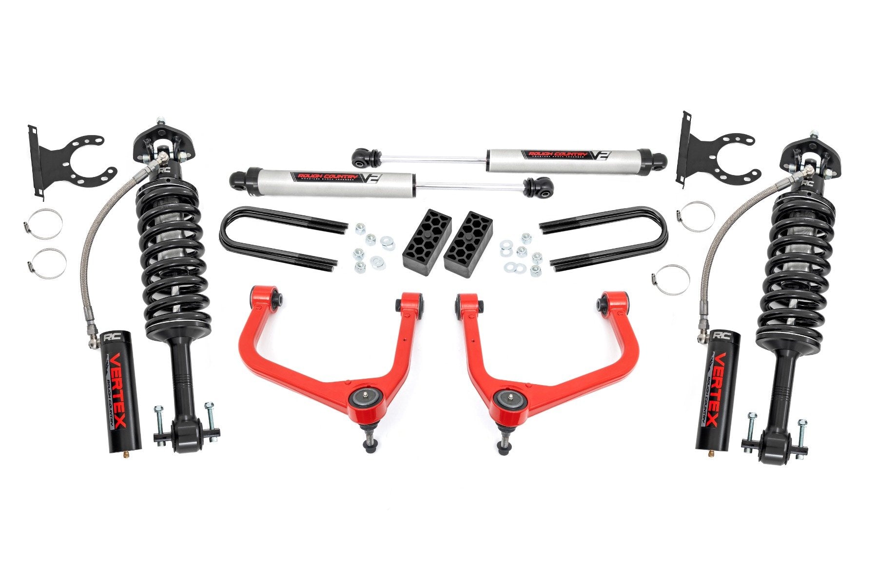 Explore New Heights: GM's fourth-generation Silverado 1500 features an impressive all-new design thatΓÇÖs built from the ground up, with aggressive angles and head-turning stylings that fit in beautifully when transformed with Rough CountryΓÇÖs 3.5-inch Suspension Lift.Innovative Design and Construction: When changing a vehicle's suspension, the key to preserving ride quality is keeping the geometry of all suspension components as close to their factory angles as possible. Rough Country's 3.5in lift features a set of forged aluminum upper control arms to provide the correct suspension geometry in our most durable control arm to date! This perfect-height lift is a great choice for anyone who wants more than a simple level but doesnΓÇÖt quite want the full height of a 6-inch option. This kit lifts and levels the front of the vehicle with the rear, offering enough increased ground clearance to run up to 33" tires with an improved, aggressive look. We didn't want to limit you to one standard kit. Rough Country's 3.5-inch kit is configurable with all the shock options that we offer. This allows you to choose which shock series you want! Ranging from our nitrogen-charged N3 shocks to our Vertex reservoir shocks the power to choose is in your hands.Installation: Requiring the use of a strut compressor to install, an estimated timeframe of 5-6 hours is recommended to complete this full installation. This full kit can be installed at home and can be completed efficiently and quickly!Limited Lifetime Replacement Warranty: Rough Country's 3.5" Suspension Lift Kit is backed with a limited lifetime replacement warranty towards manufacturer defects. As such, the product is protected from structural and workmanship damage after the date of purchase. With our industry-leading warranty give yourself peace of mind when using Rough Country's Suspension products!