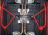 Our subframe connectors tie together the inner/outer frame rails and the rear lower control arm mount. Braces are powdercoated black.