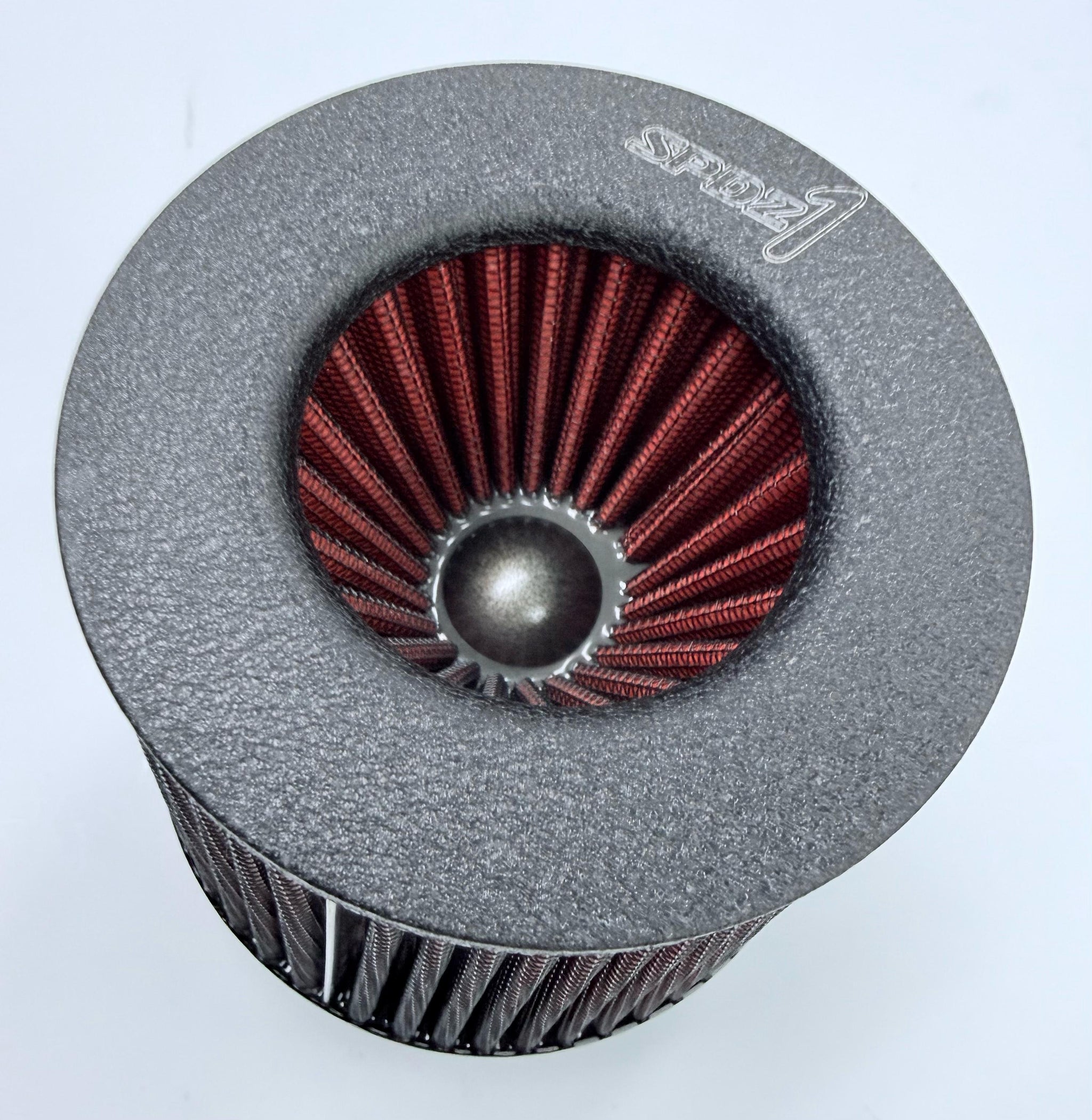 Finished in black wrinkle with a bold red pre-oiled filter media and stamped with the SPDZ1 logo on top, this isn’t just performance — it looks the part under the hood too.