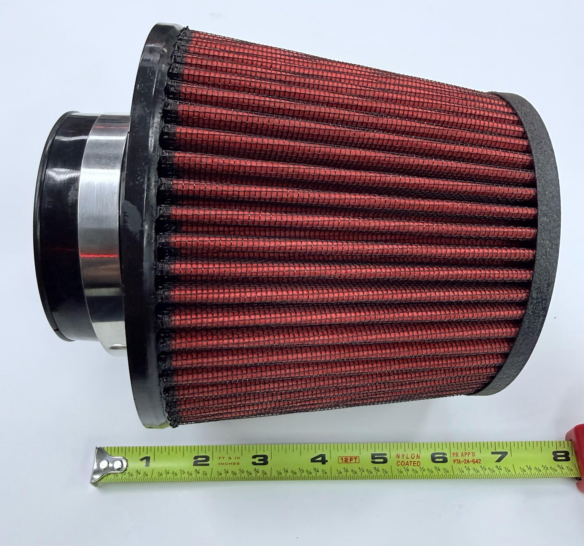 This filter features a large 6" base and 6.5" overall height, maximizing surface area for improved airflow while maintaining excellent filtration. The 3" inlet fits most aftermarket intakes, turbo inlets, and custom cold air setups.