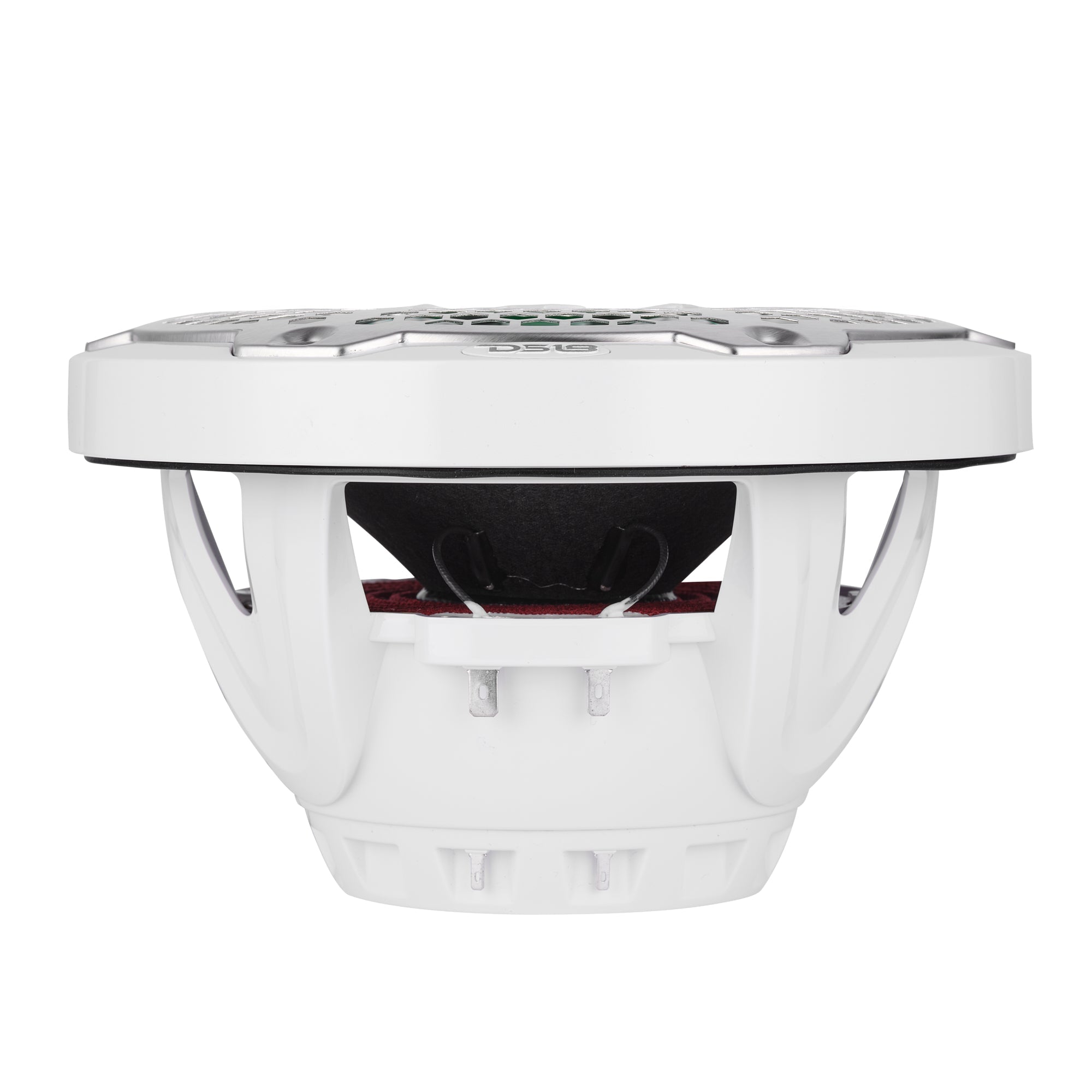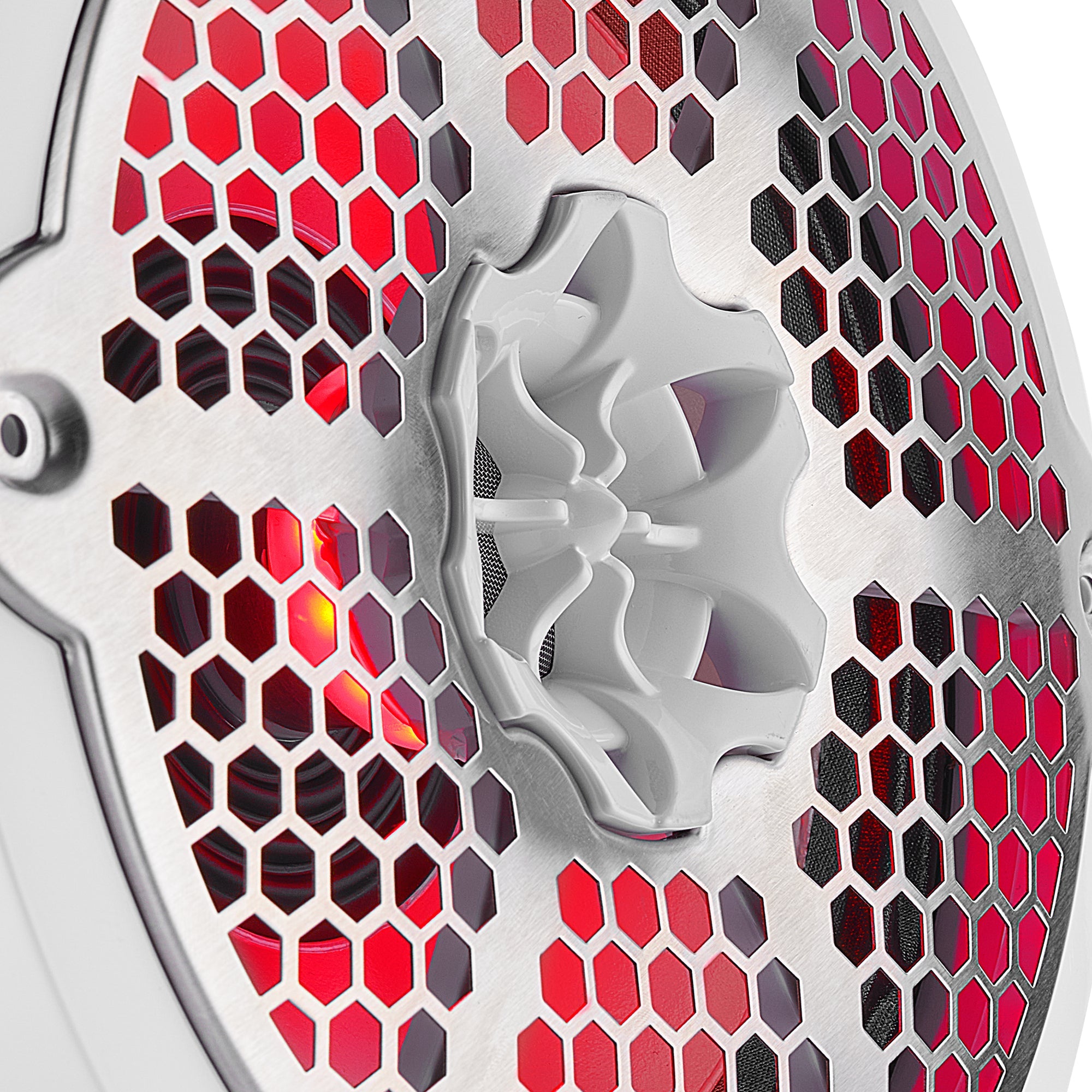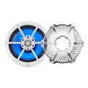 The IP65 rated speaker is housed in a UV-protected injection-molded ASA basket. A removable stainless steel grill guards against corrosion. Integrated 12V RGB LED lighting adds customizable flair to your audio system.