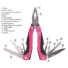 14-in-1 Pink High-Quality Pocket Multitool Pliers. Great for Outdoors, Camping, Fishing --DT5015P