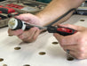 ANGLE ADJUSTMENT ELECTRIC SCREWDRIVER.  For a more convenient reach, depending on the situation, the cordless screwdriver's head has a useful pivoting feature. Push a button and the head rotates from a straight to a right angle. The two-angle position adjustment is convenient for reaching in tight places.