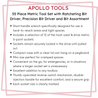 BACKED BY APOLLO TOOLS’ LIFETIME WARRANTY. Built from carbon steel and heat-treated, this socket set meets or exceeds ANSI specifications, and is backed by Apollo Tools’ lifetime warranty on manufacturing defects. If any part is defective in material or workmanship, we will replace it free of charge with the same item or a like item of equal value. Click on this link to register your Apollo Tools product.