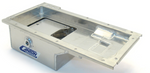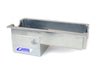 This bracket drag race oil pan is for Dart/Rocket aluminum and iron, spread rail blocks. It has an 8-1/4" deep by 9-1/2" long by 8-1/2" wide sump with a 6 qt. system capacity. Clears a 4.125" stroke with a steel rod. Will work with stock or aftermarket starters. This pan requires one of our pickups.