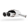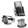 As with the rest of the system, the muffler sections connect to the y-pipe section using high quality cast flanges. The heart of this exhaust system are two all new bespoke COBB designed mufflers. These new muffler sections feature a single 2.5" inlet and dual 2.5" outlets that accept slip-on 3.5" dual wall, slash cut tips with laser etched COBB logos.