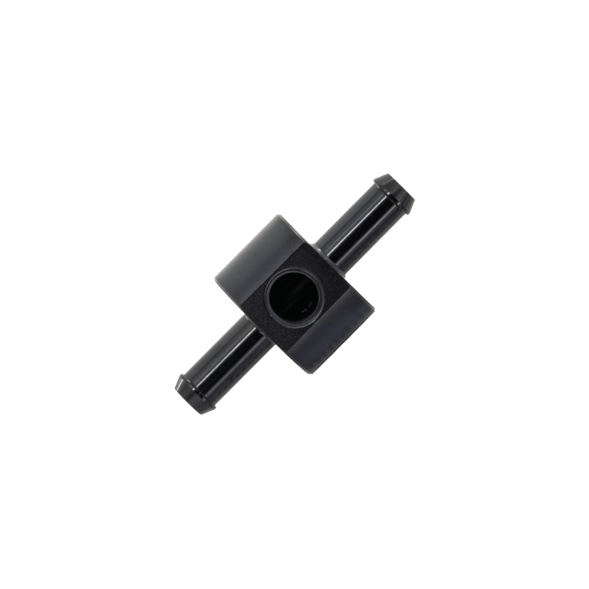 Elevate your fuel setup with the Flo Supply Inline Fuel Adapter. Precision machined from billet aluminum and finished with a matte black anodize, this 3/8" hose barb fuel adapter features a handy 1/8" NPT side port for seamless measurement or auxiliary connections. Count on its robust design and corrosion-resistant coating for reliable, long-lasting performance.