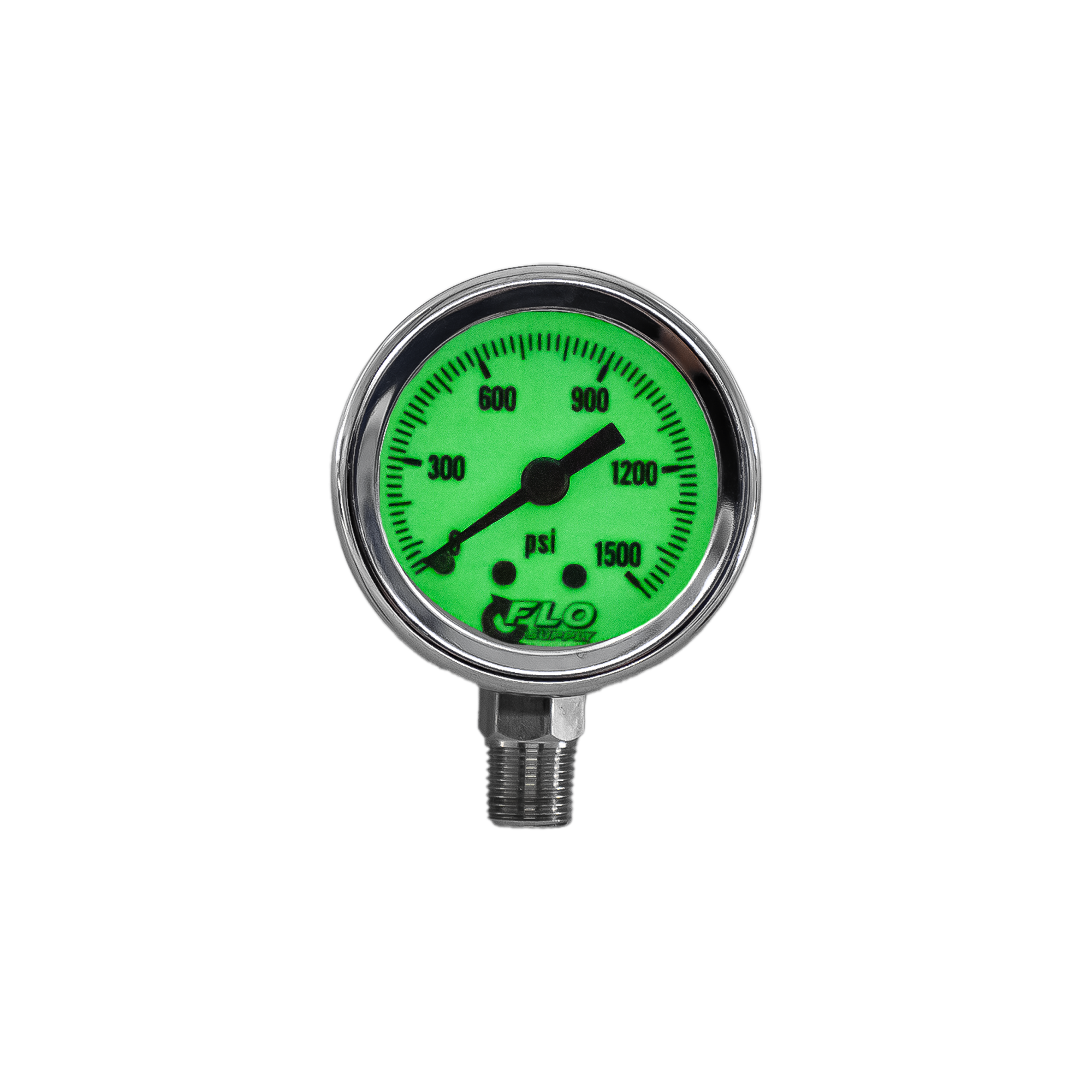 The Flo Supply Luminescent CO2 Pressure Gauge offers precise readings from 0-1500 PSI with a 1.5" white face that glows in the dark for easy visibility in low light. Built with a stainless steel case and internal components, this gauge ensures durability and corrosion resistance. Featuring a 1/8" NPT male bottom inlet, it’s ideal for compact and efficient CO2 system requirements.