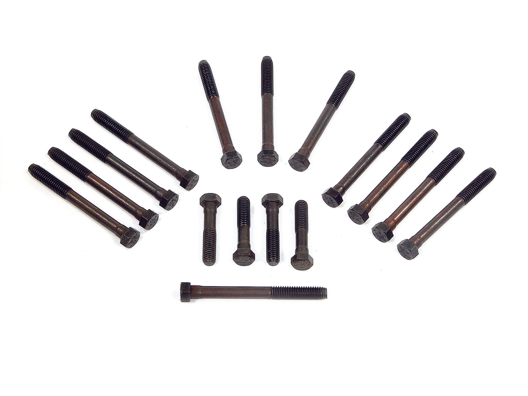 These grade 8 alloy steel, longer length bolts are designed to compensate for thread length lost when using head bolt washers. This allows increased torque and clamping. Set of 16 does one cylinder head.
