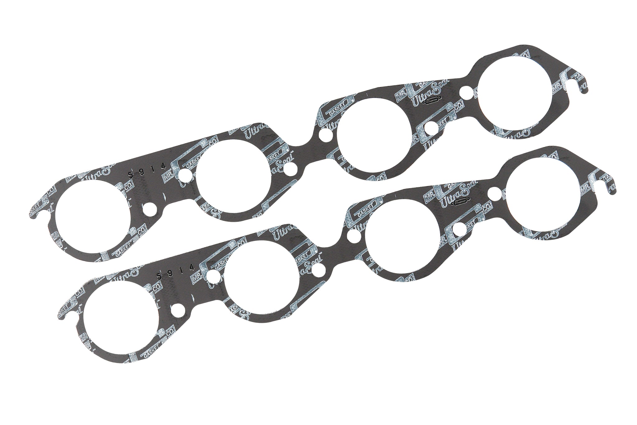 Manufactured from high-temperature steel core/graphite faced exhaust material. Expanded steel core provides stability and maximum torque retention to eliminate gasket failure. Graphite facing provides excellent heat resistance and thermal conductivity to transfer heat away from the cylinder head. Conforms to and seals minor surface irregularities. High recovery material allows header or manifold flange to stay sealed if flange loses clamp-load. Can be trimmed if necessary for modified port applications. For original equipment replacement, high performance street, drag race and oval track use.
