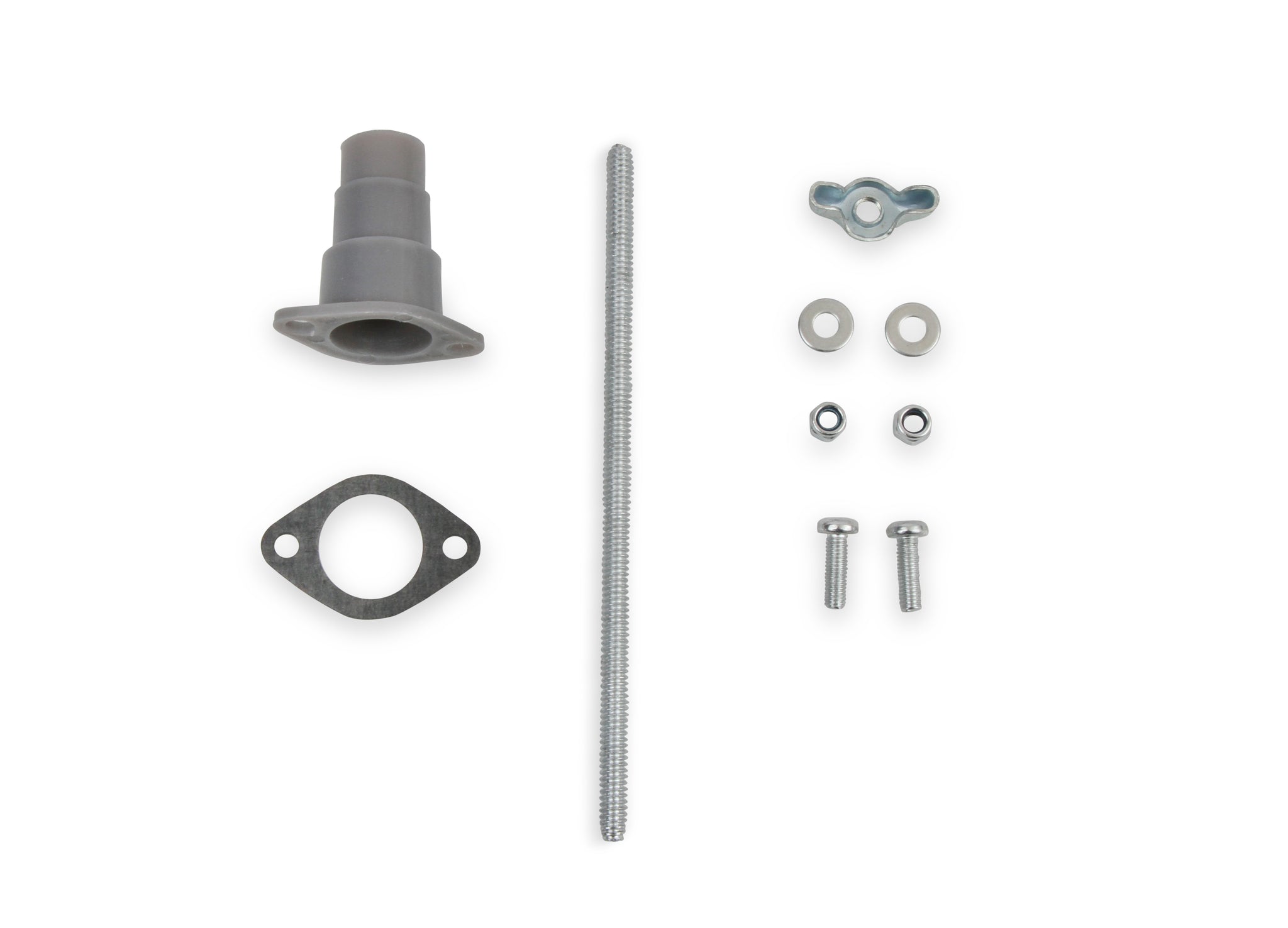 This Mr. Gasket Air Cleaner has chrome plated steel top and base. Fits most carburetors with a 5-1/8 inch neck. Has a 14 x 2 inch open paper filter element with wire mesh surround. Base has punch out for included pcv fitting. Carburetor stud and wing nut included. Overall height is 2-1/4 inch.