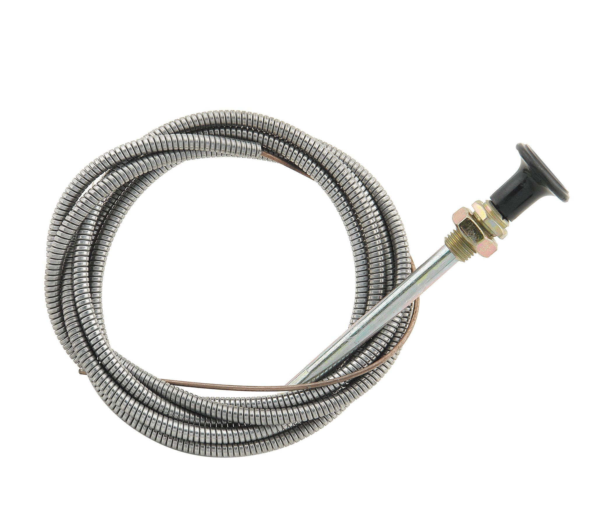 Cable assembly is composed of a sturdy solid steel inner wire with a plated steel outer spring shroud. Cable is 72 inch long and can be shortened with simple hand tools. Easily installed, it requires a 3/8 inch diameter mounting hole.