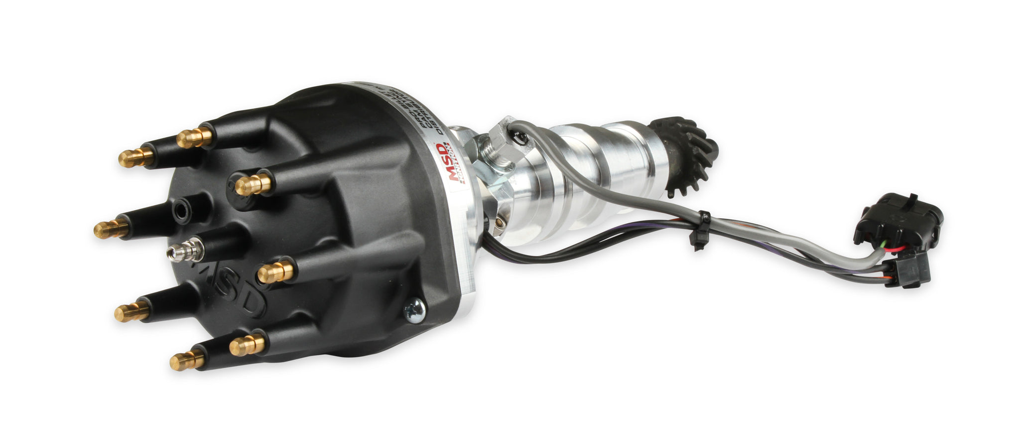 Each distributor is CNC-machined from billet aluminum creating a strong foundation. The caps are MSD designed and molded from Dupont® Rynite TM material for great strength and resistance to spark scatter. A great new feature is the two piece adjustable rotor that is supplied. This assists in setting up the proper rotor phasing for accurate timing and spark control.