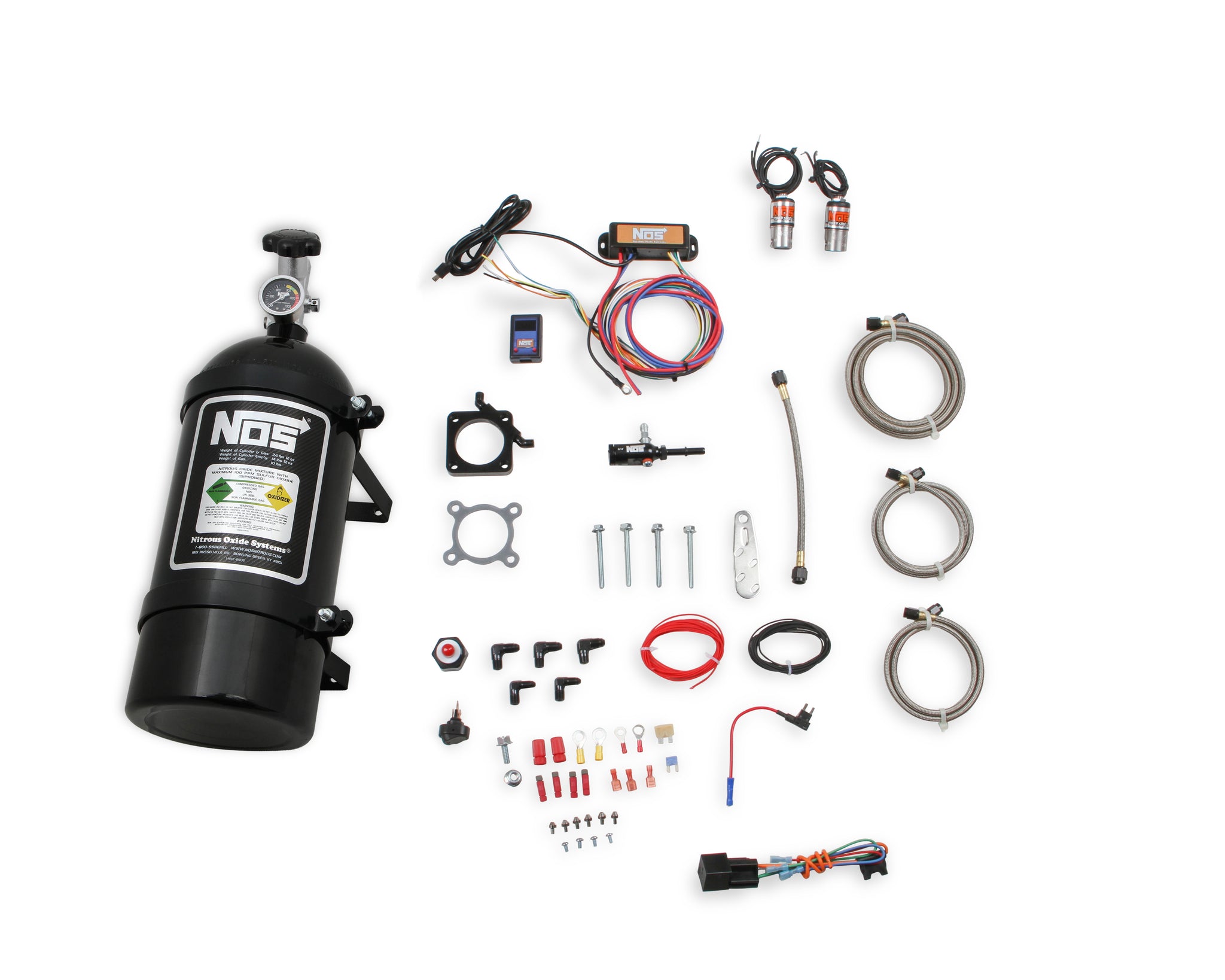 Do you want more power in that late model RZR? NOS now offers complete kits that add up to 40+ HP at the flip of a switch. These kits include the mini 2-stage controller for exceptionally smooth power delivery. The 5/16" billet fuel rail adapter provides fuel to the billet nitrous plate. These easy-to-install engineered systems do not require any modifications to the fuel system or induction system. Choose from kits w/ different bottle sizes (2.5 lb., 5 lb., or 10 lb. bottle size) and components in the classic NOS blue or new black finish for a stealth appearance.