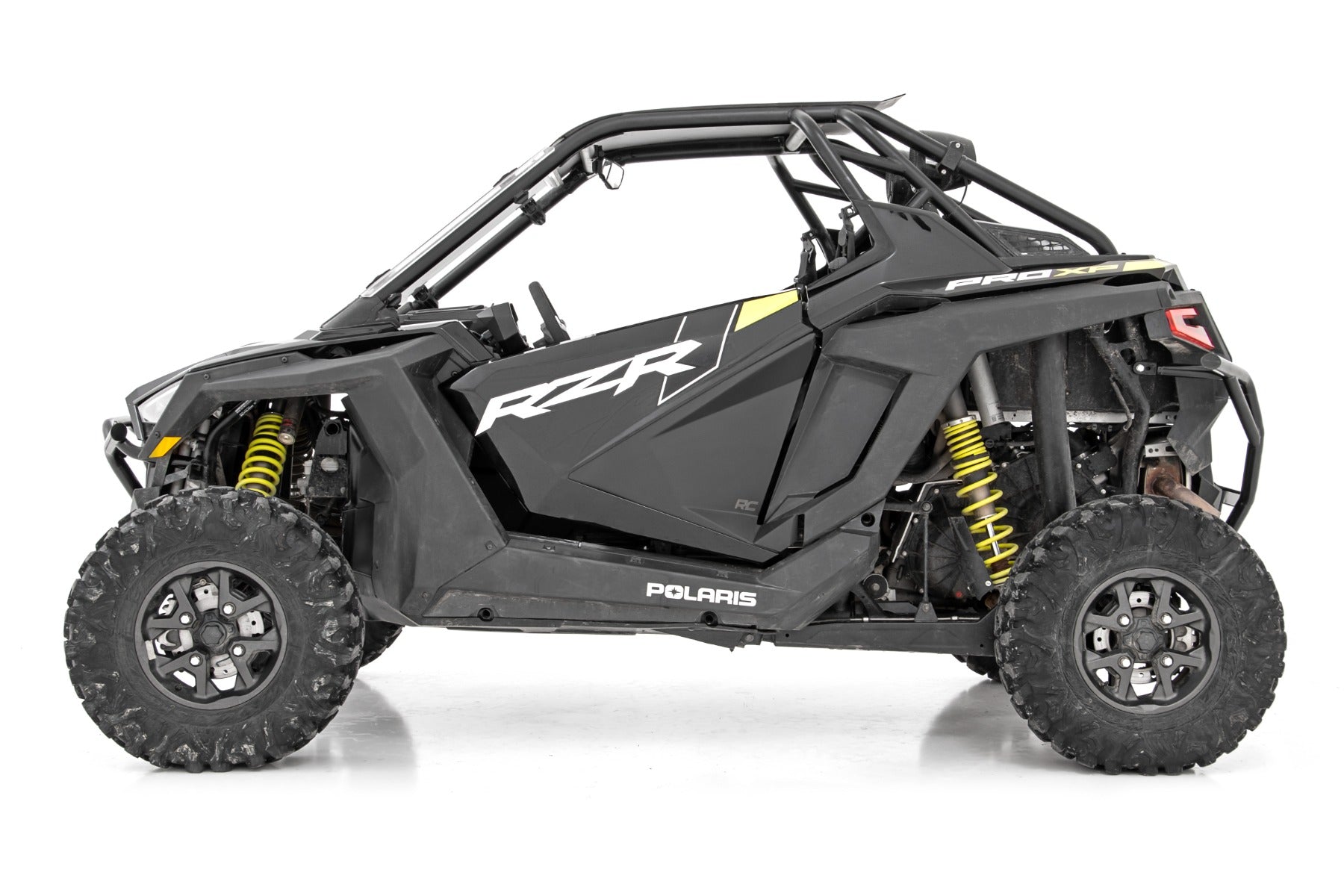 Are you fed up with Dirt, mud, and debris coming through the half-door of your RZR? Rough CountryΓÇÖs Lower Door Insert is a great solution that wonΓÇÖt break the bank. This innovative product completes the door by filling the missing lower half with a polypropylene injection panel. In no-time time you can have the coverage that a full door provides, ending the frustration of mud-filled floorboards.\This easy-to-install panel kit comes with two polypropylene injection panels that are molded for a precise fit and feature a flat black finish to hold up in the harshest outdoor elements. The kit Simply attaches to the interior of the stock door using the factory equipment-making for a factory-like appearance!