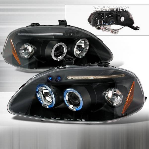 Spec-D 96-98 Honda Civic Halo Projector Headlights Black