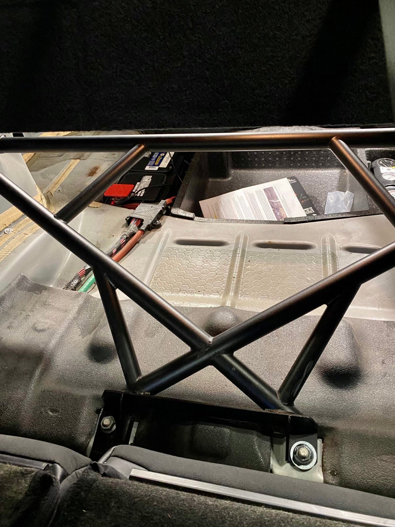 Our 4-point Xtreme rear shock tower brace mounts in the trunk (Challenger/Charger) and is our strongest yet. Made here in the USA from super tough steel with a 4x braced X-pattern for the ultimate in strength and rigidity. If you're looking for true race car performance and the best strength-to-weight ratio this is the part for you!