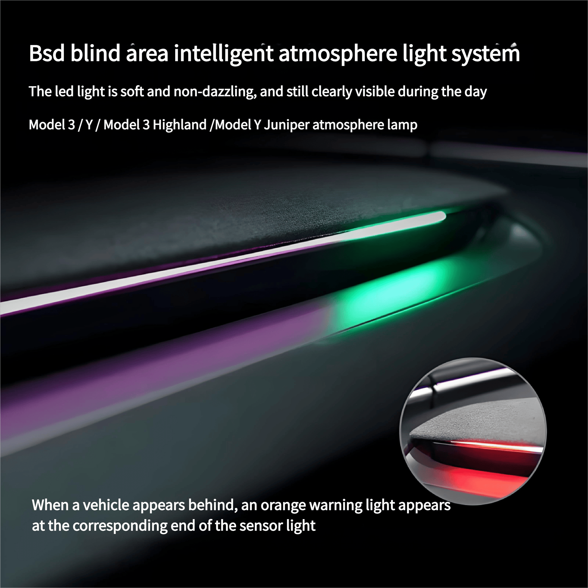 BSD Blind Spot Monitor RGB Ambient Lighting for Model 3/Y | OEM Screen Control