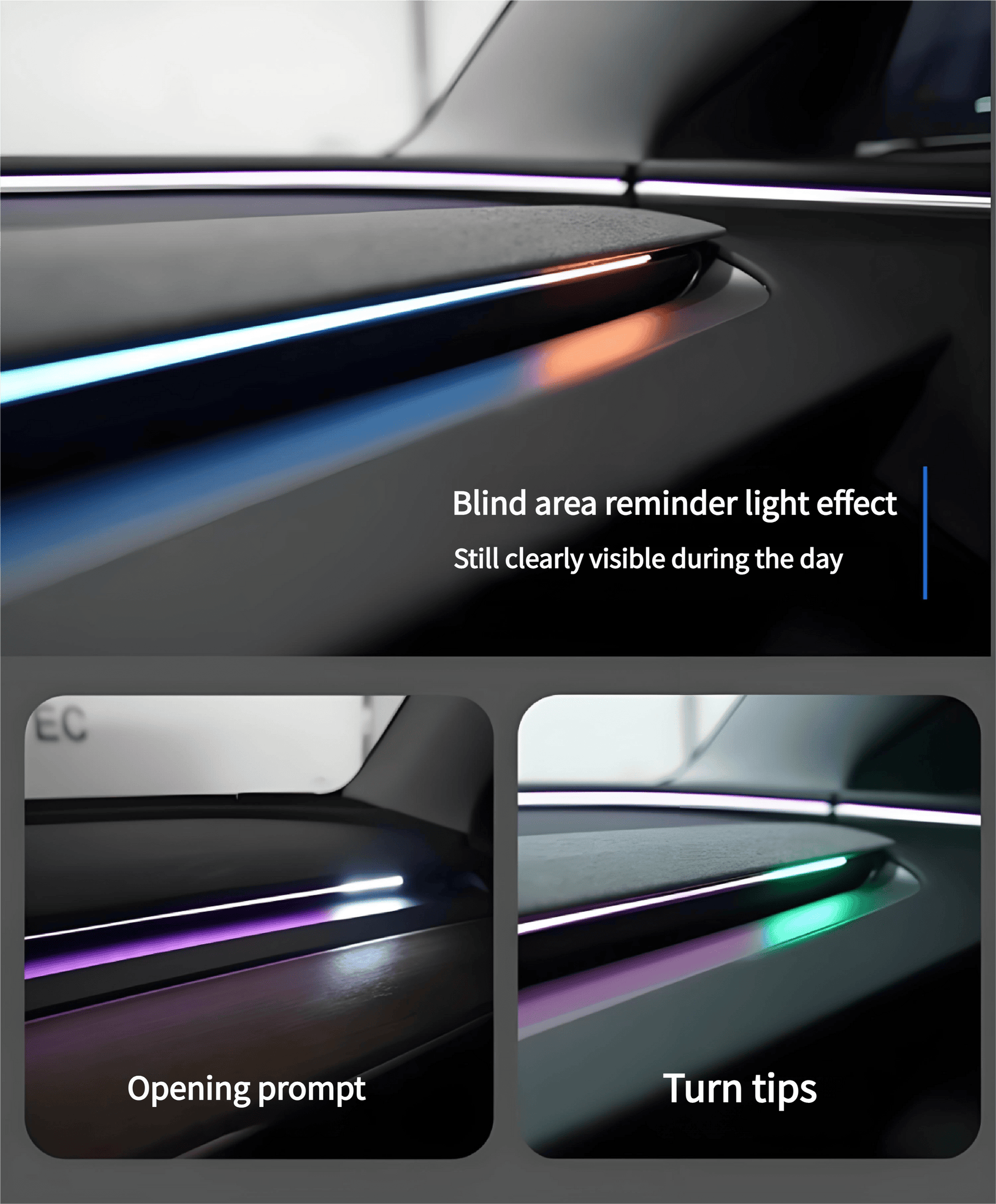 Synchronized with your turn signals, the ambient lights provide an additional, dynamic visual cue for your intended maneuvers, enhancing both safety and style.