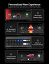 - Display Synchronization: Speed Info(KM/H or MPH)/Blind Area Warning/Hands-free Driving Warning/Battery Usage Info/Light Display/Gear Display/Turn signal display/Mileage Info/Tire Pressure Info/Safe Distance/Time and Temperature Display.