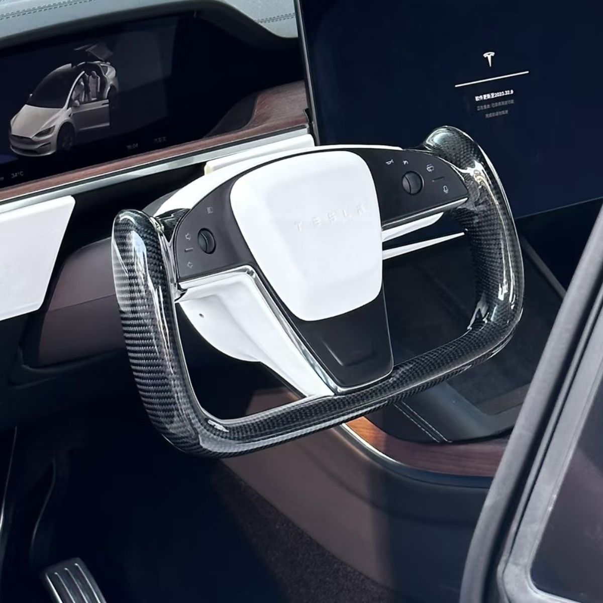 TESERY Carbon Fiber Yoke Plaid Steering Wheel Upgrade for Tesla Model S / X 2021-2025