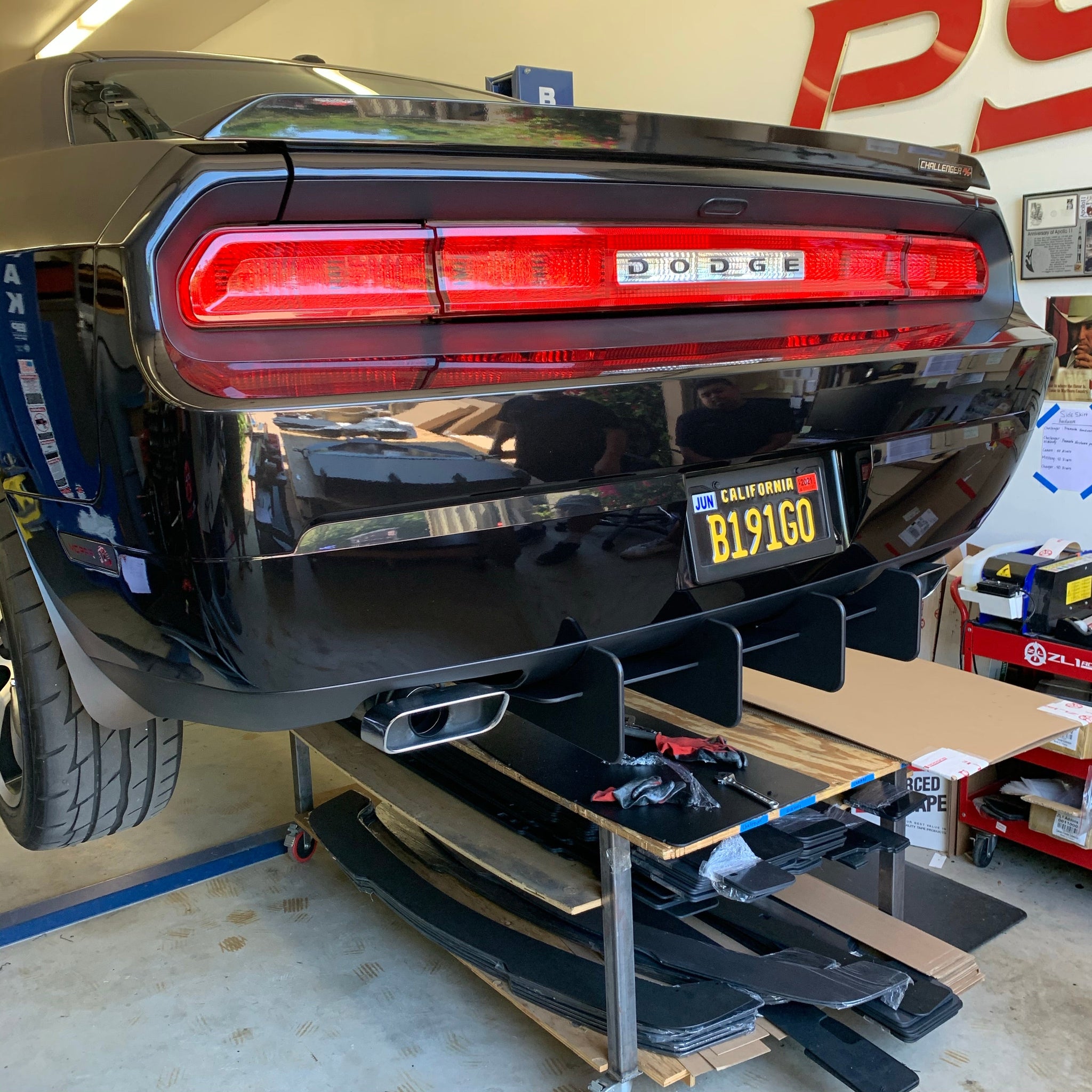 This is our new Diffuser for the 11-14 Challenger across all models. This products comes with an aluminum belly pan to smooth and diffuser the air coming out from under the car that is attached to our HDPE material with an automotive finish that is visible.
