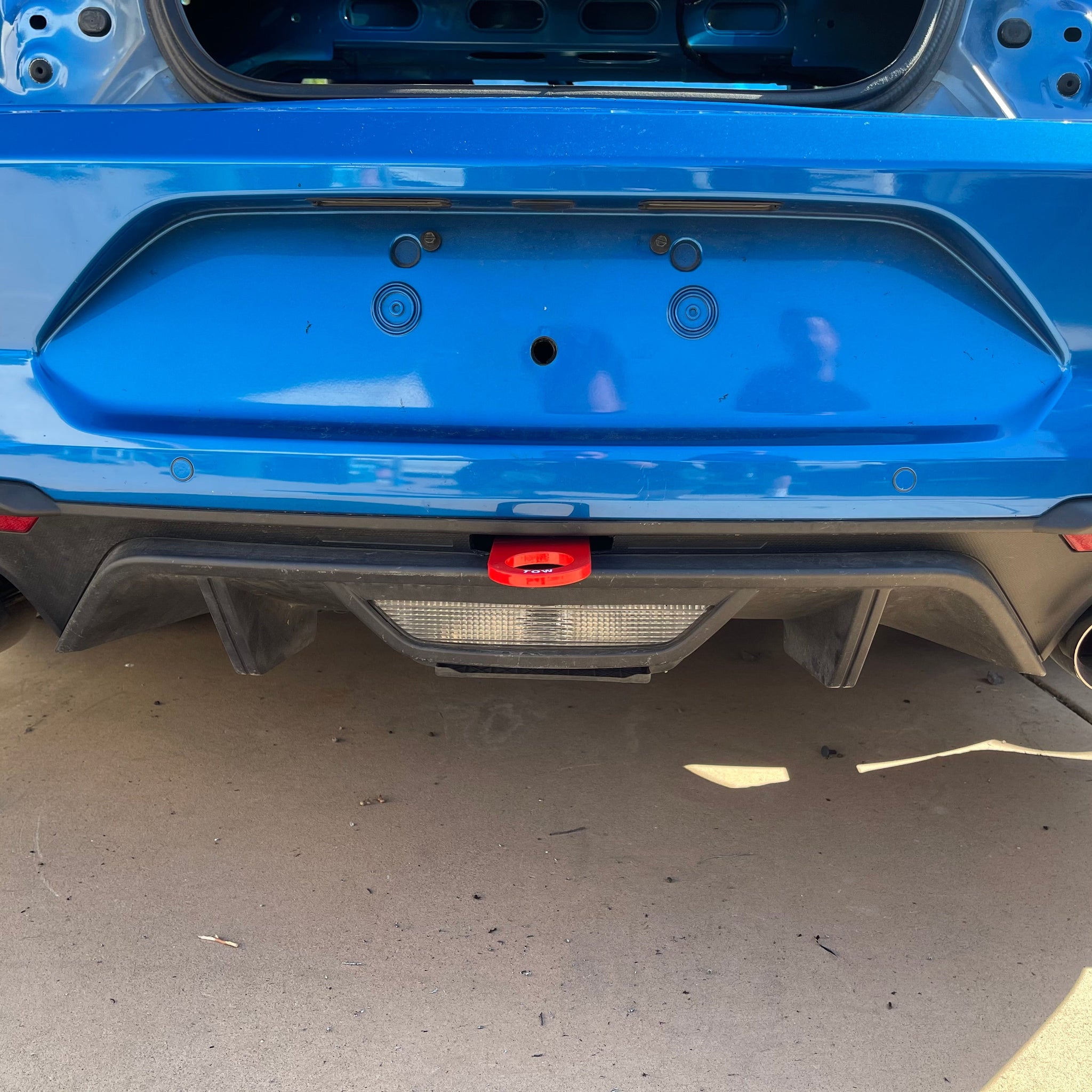 Our 16-20 Mustang GT350 & GT350R GT4 tow hook combines form and function and is available with a Billet ring powder coated in either red or black. This product requires the upper portion of the grill to be trimmed for the front and the lower valance in the rear. (see images)