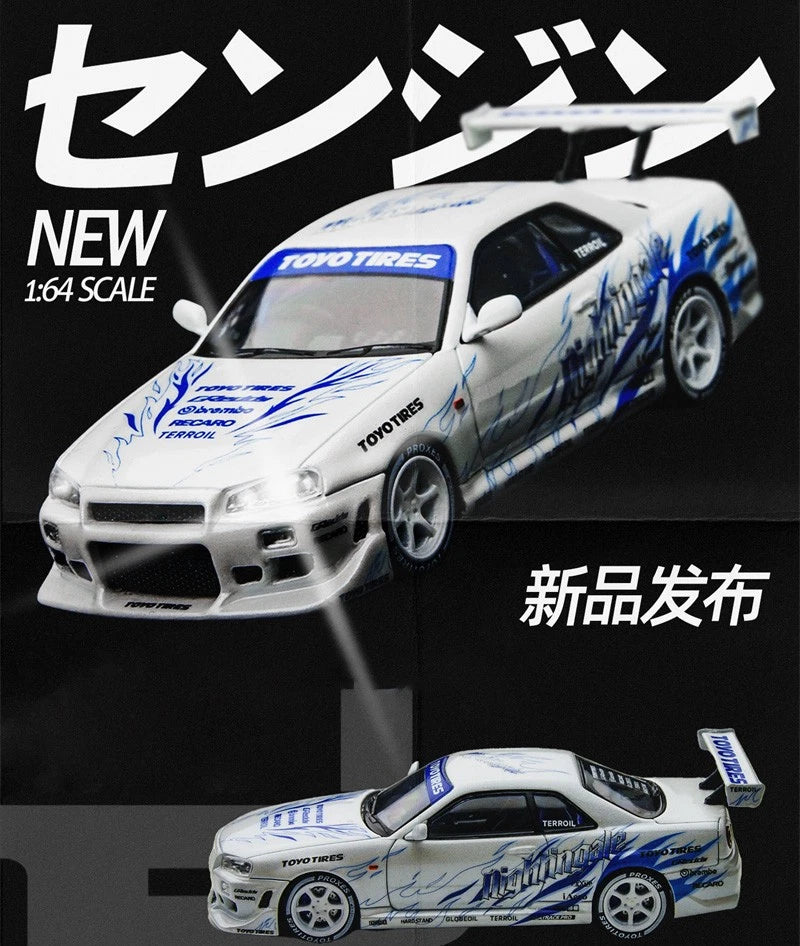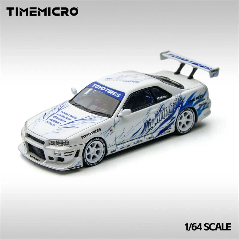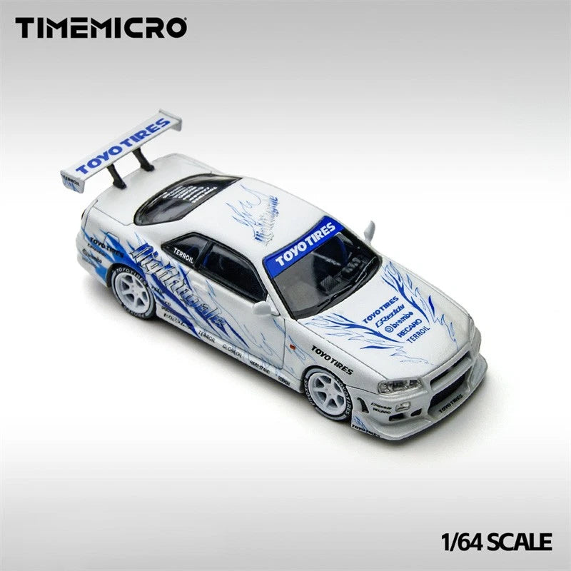 Time Micro 1:64 Skyline R34 Drifting flame white Diecast Model Car