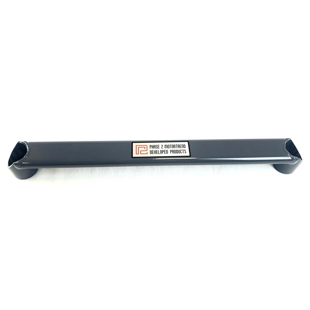 P2M Nissan R35 GT-R rear lower tie brace. Constructed from T6 6061 4.5mm chambered aluminum that is light weight and still retain a strong rigid structure. Smooth gun metal gray powder coating finish. Reinforce the rear end of your car for improved handling and slide control on street and track. Each bar is precision TIG hand welded.