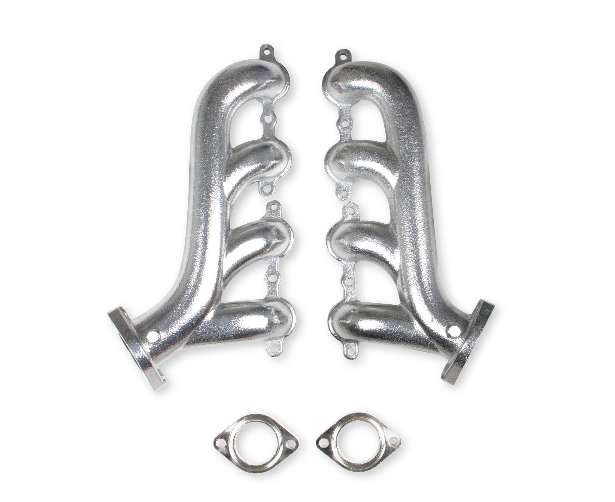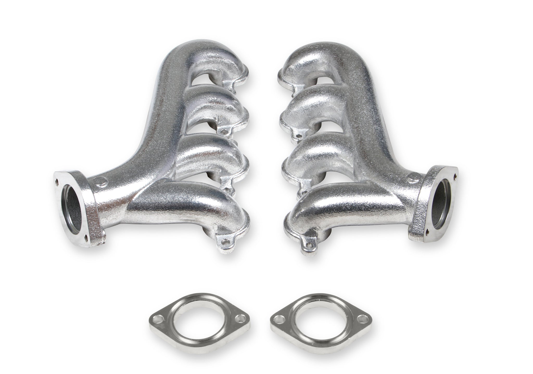 These Flowtech cast iron exhaust manifolds have a 2.25 inch outlet, natural cast finish and are designed to hug close to the engine block so they fit into a wide variety of replacement and engine-swap applications at a budget friendly price. Being cast iron means they will provide years of leak-free performance with less under hood noise than traditional headers. Plus, their shorty design means you can route exhaust tubing close to your frame/floor pan for maximum ground clearance.