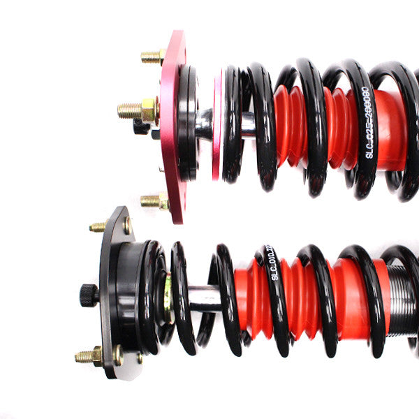 The Godspeed Project MAXX coilovers are for the tuners that want a track oriented setup that also provides daily commute comfort. With 40 levels of damping valve adjustment, you can easily adjust from stiff to soft simply by twisting the knob. Featuring mono-tube design with large capacity 52 mm dia. JIS seamless carbon steel shock body filled with IP F.A. 5W damper oil with properly valved 44 mm internal pistons to endurance competitiveness on a track course or daily spirited driving on public road. Cold wound springs are made from high tensile SAE9252 steel to ensure durability. Vehicle ride heights are adjusted with lower brackets to offer maximum shock travel in order to provide comfort compared to lowering springs alone. Mostly billet aluminum hardware accessories are used for its weight saving property in order to reduced overall weight of the coil-over system yet remain durable. All parts are replaceable and most importantly shock absorbers can be rebuild for customization or simply purchase replacement cartridge without spending too much for complete new coil-over system. You will experience quicker response times, improved bump absorption and increase grip to increase the safety when pushing your car to the limit!Improved Springs Rate To Help Ride Handling And Response