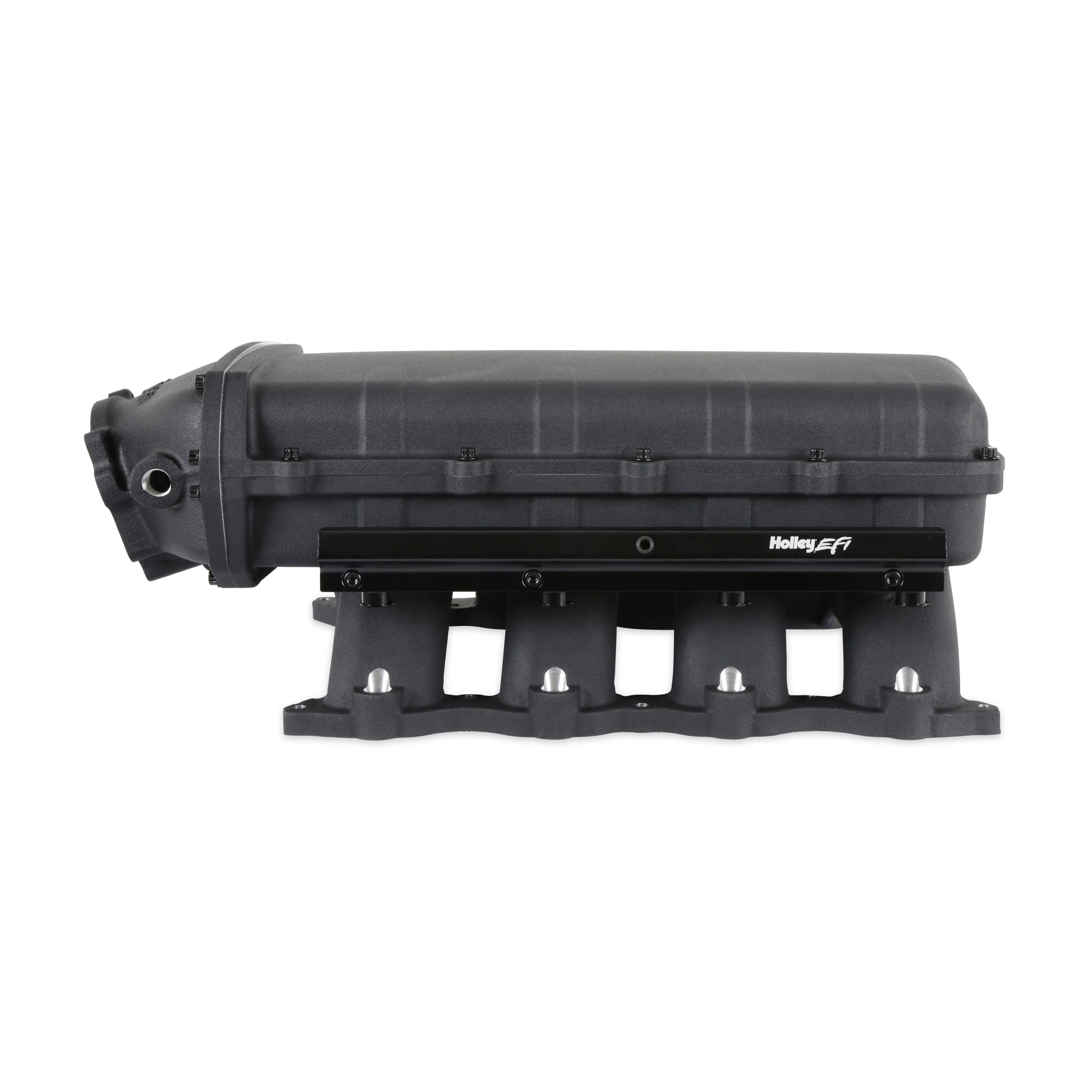 The aggressively designed Hi-Ram is constructed in a two-piece design to accommodate for air to water intercoolers and feature up to 20% more plenum volume versus Ultra Lo Rams. This manifold design is only offered in an oval throttle body configuration.