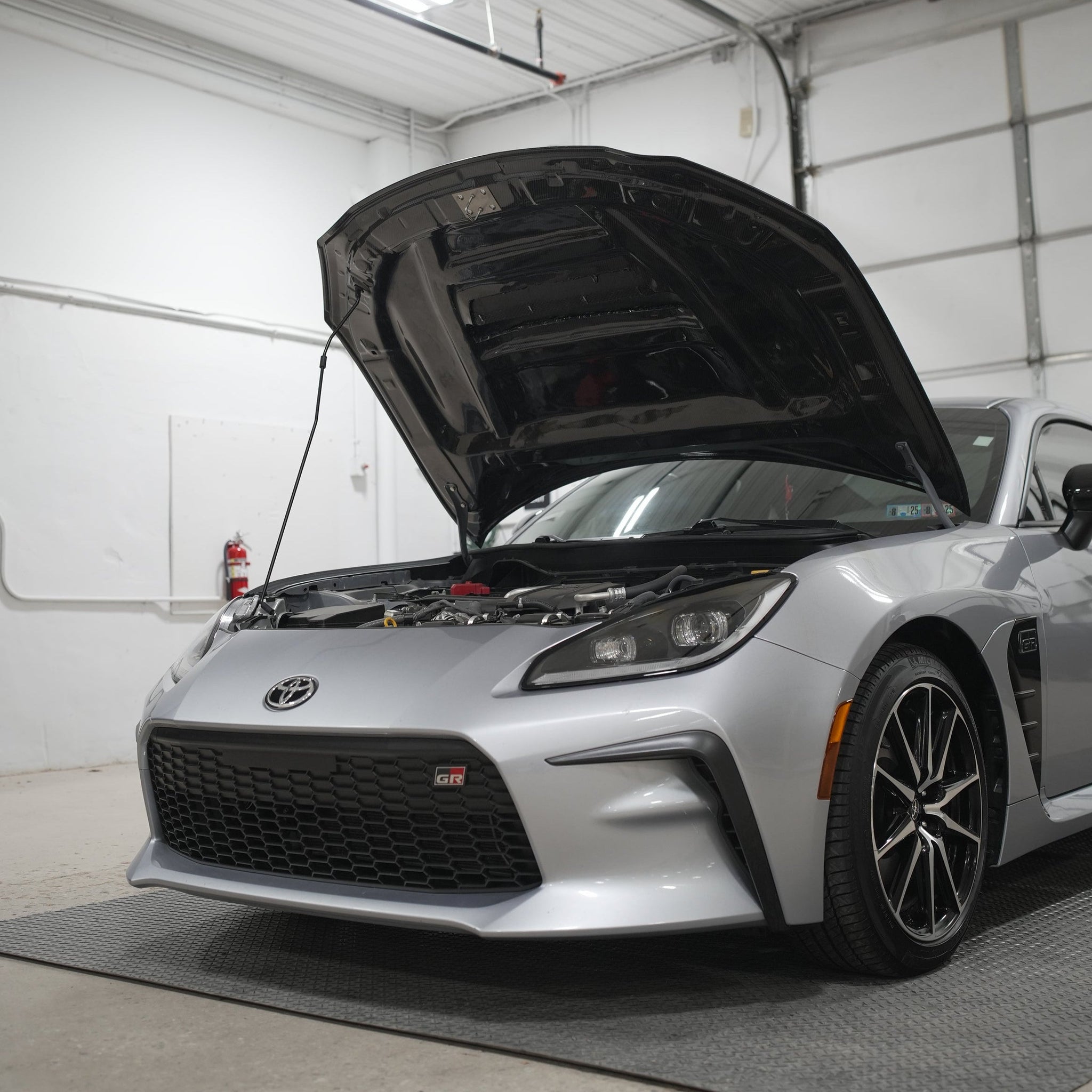 The JDMuscle 22+BRZ/GR86 Tanso Carbon Fiber Hood - STI style is a high-quality aftermarket hood designed to provide a sleek and stylish upgrade for your 2022 and newer Subaru BRZ or Toyota GR86. This hood is made from high-quality carbon fiber material, which is lightweight, durable, and has a glossy finish.