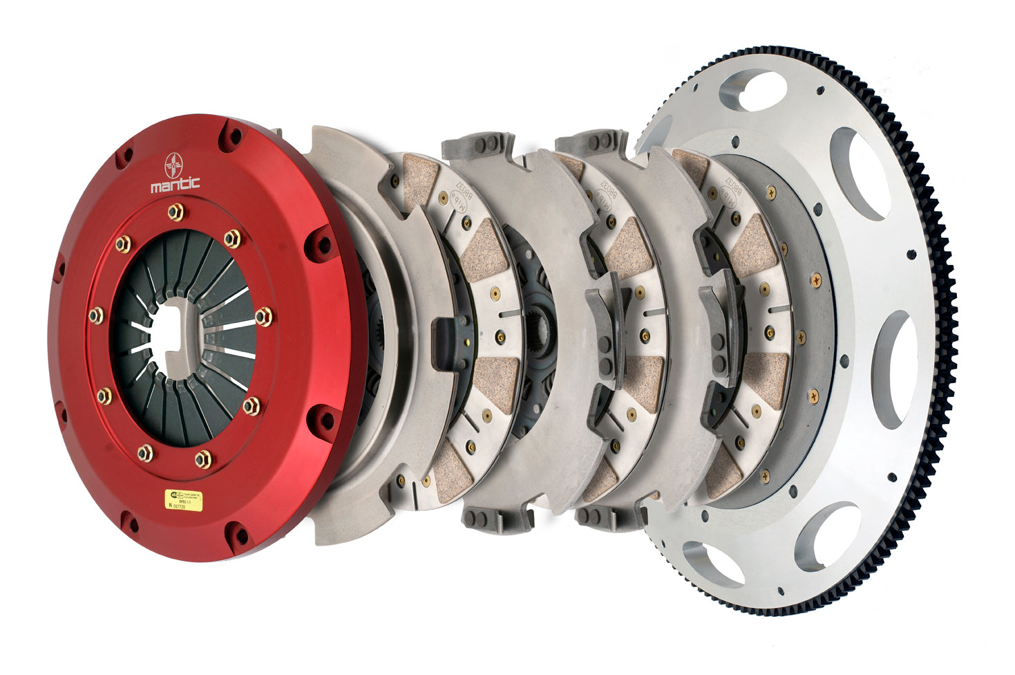This Mantic Clutch kit uses our unique sprung center with cushioned ceremetallic triple discs. This means more torque capacity and heat resistance while retaining excellent drivability. The Mantic triple clutch uses 9" diameter discs that greatly reduces the Moment of Inertia (MOI) for a seamless transition of power between gears. The low MOI is a huge difference over the typical 10" or 11" clutch kits. More horsepower to the ground as well as quicker precise shifts is the benefit over the stock clutch. The lightweight flywheel allows quicker revs compared to the heavier OE units.