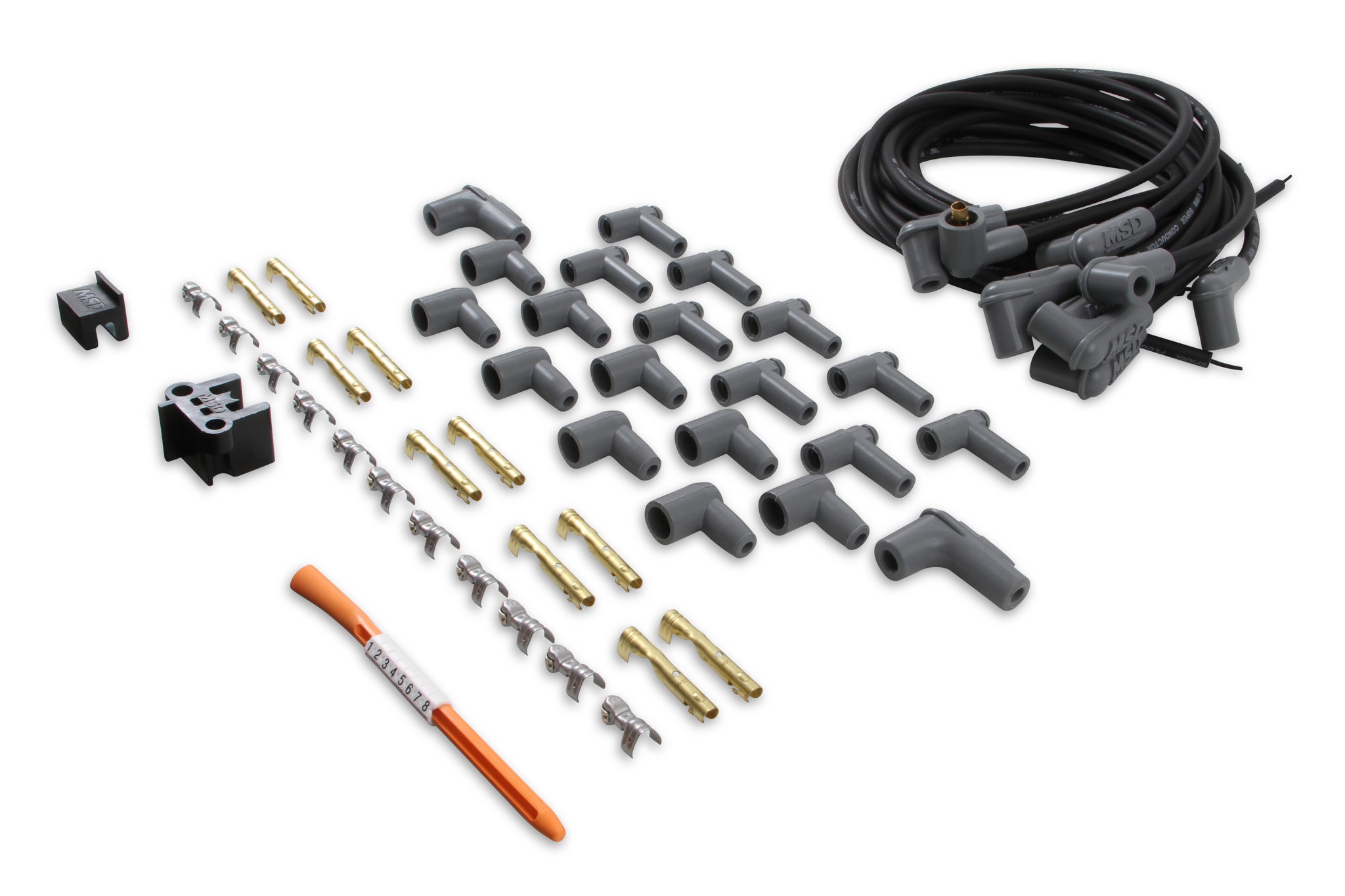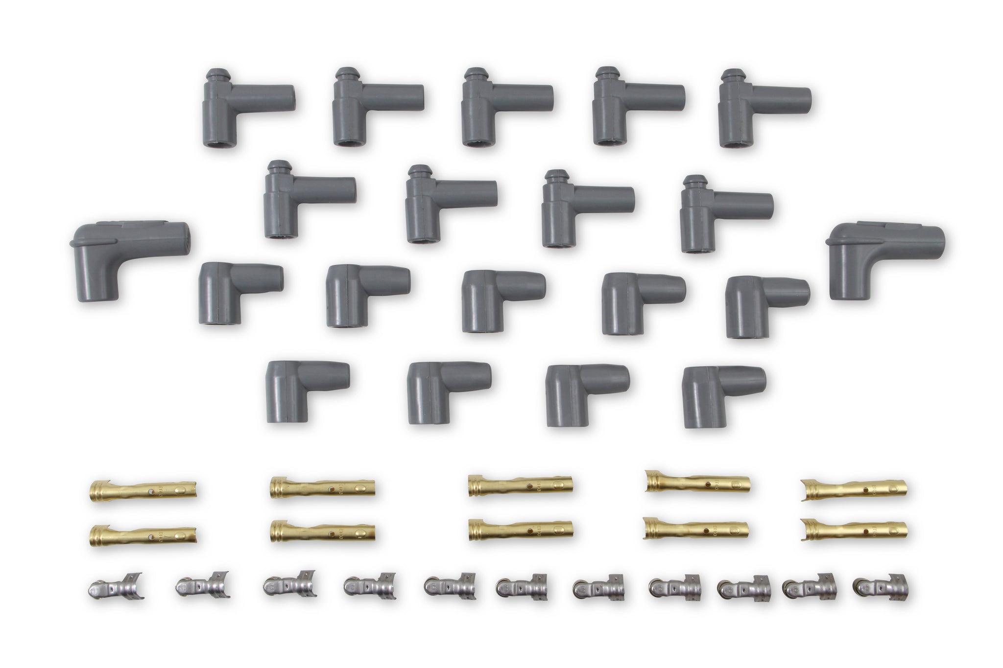 Our Universal spark plug wire sets come with the spark plug terminal and boot installed with the other end open. Distributor cap boots and terminals are included so you can cut the wire to the desired length, then install the terminal with the supplied Mini-Stripper-Crimper. It's a little more work, but in the end it will be worth it.