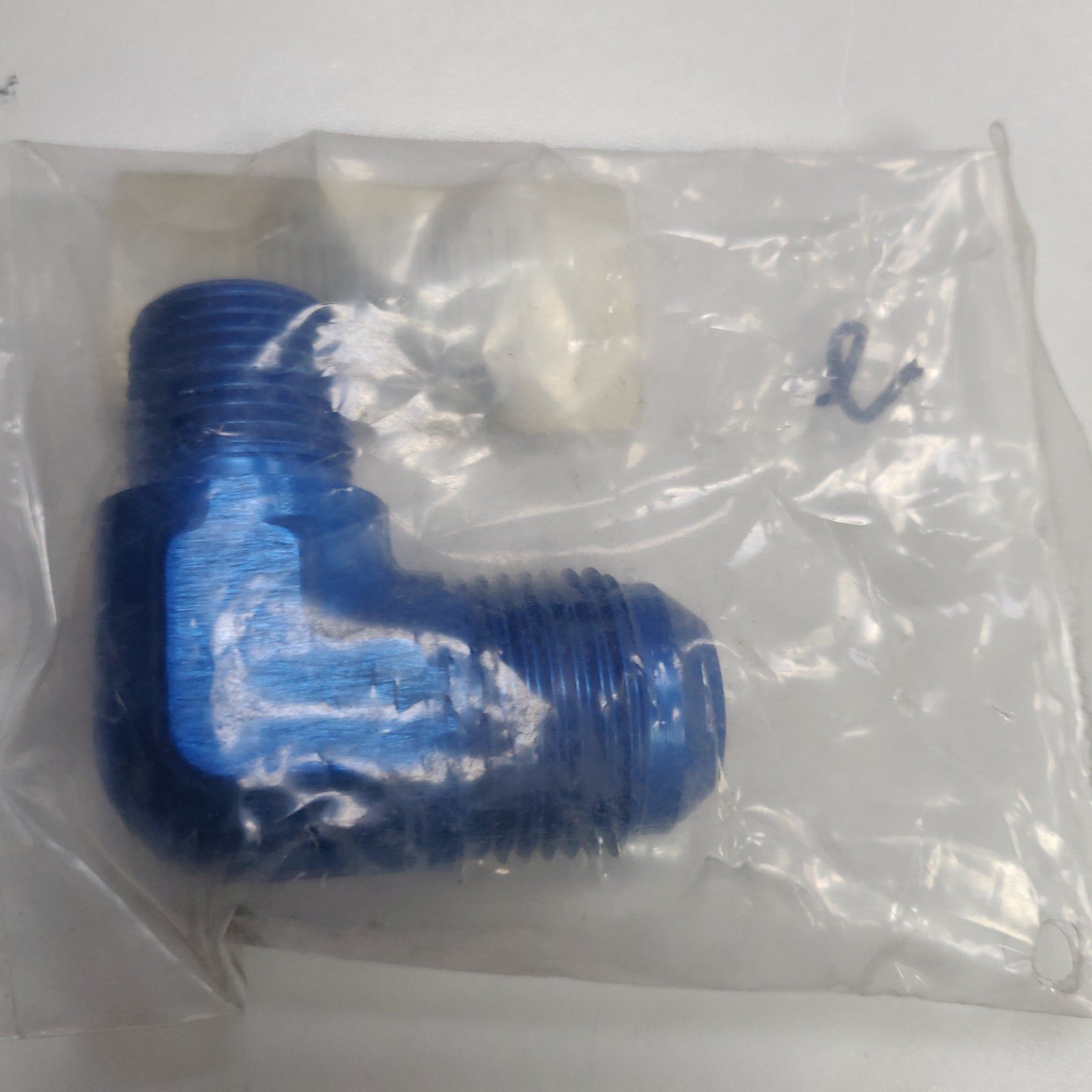 -12 90 degree male adapter to -08 (1/2") NPT male - blue
