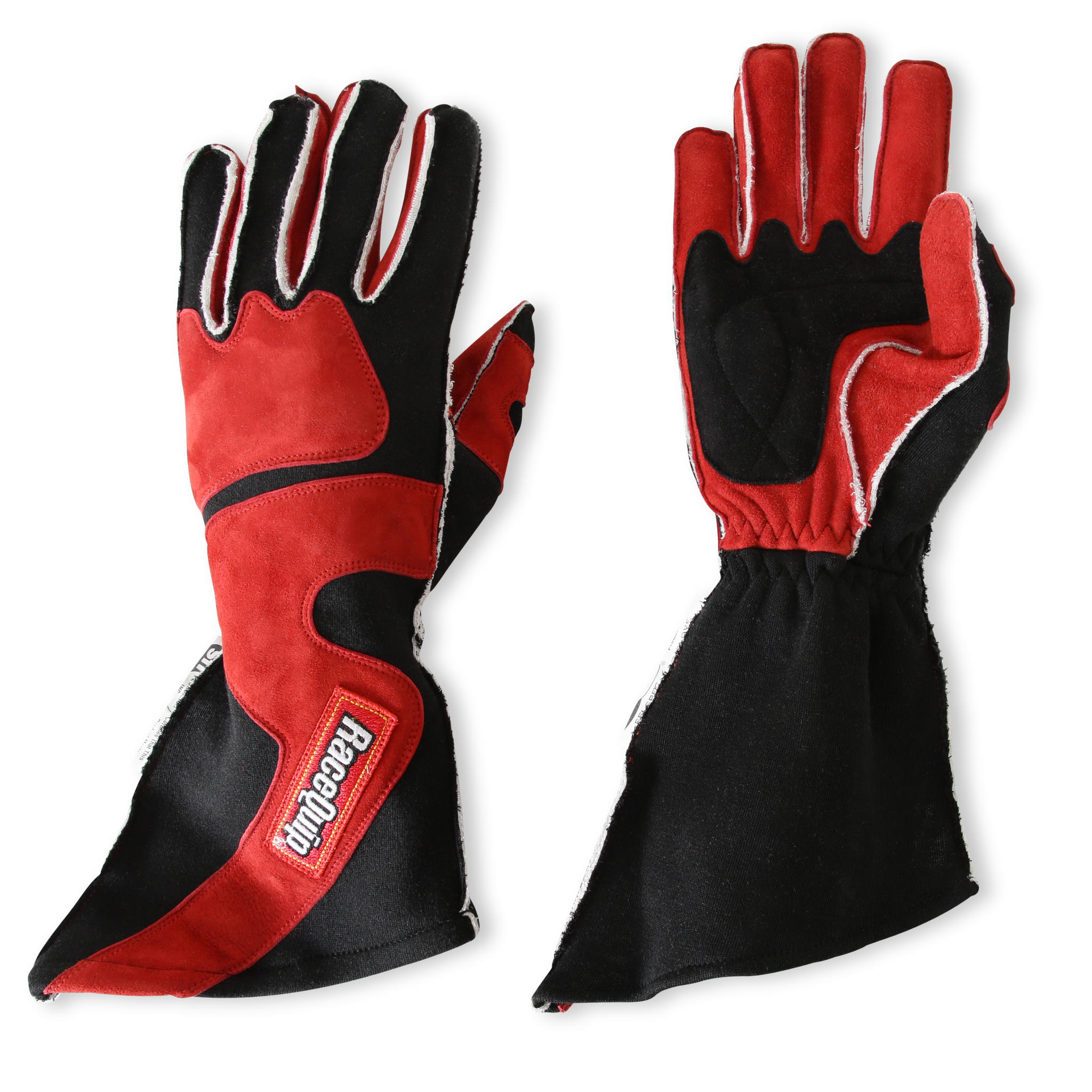 The RaceQuip 359 Series double layer outseam, angle cut gloves are constructed with two layers of knit Nomex® and exceeds the SFI 3.3/5 rating. The outseam, or reverse seam as they are sometimes called, have the seam on the outside for improved comfort and better feel on the wheel. These are the same style of glove that you typically see worn in the top levels like NASCAR, Indy Car, IMSA and others.The palms are a high grip, supple suede leather which also improves comfort and feel. An extra long angle cut gauntlet provides extra fire protection. Mitered fingers offer a more precise fit again increasing comfort and feel. Available in Red/Black and Gray/Black. Sizes: Small to 2X-Large