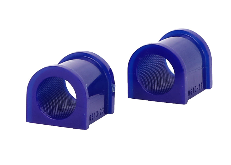 Sway bar mount bushings are one of the most underappreciated components in your suspension system. Responsible for anchoring the sway bars and facilitating proper function and body control of your vehicle the OEM rubber bushings are tasked with quite a job and in-turn wear quickly compromising the effectiveness of your sway bar and contributing to a loose, sloppy feeling on the road over time. SuperPro's sway bar mount bushings are designed to fit the OEM designed hardware and mountings - no generic one-size-fits all bushings and cheap universal hardware here - each bushing is designed to integrate into the factory suspension design and function. Additionally grease retention technology is used in each bushing we make for a lifetime of smooth and silent operation turning a frequent maintenance item into a one-time repair upgrade to keep your vehicle driving like new; for life.