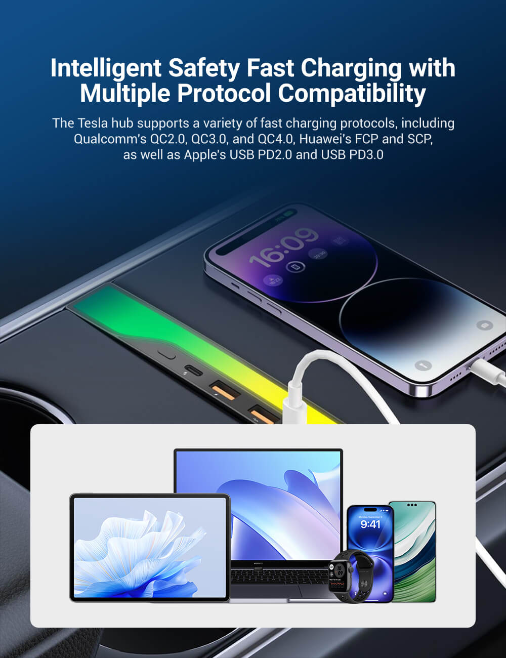 Center Console USB Hub with Ambient Lighting for Model 3 Highland/New Model Y