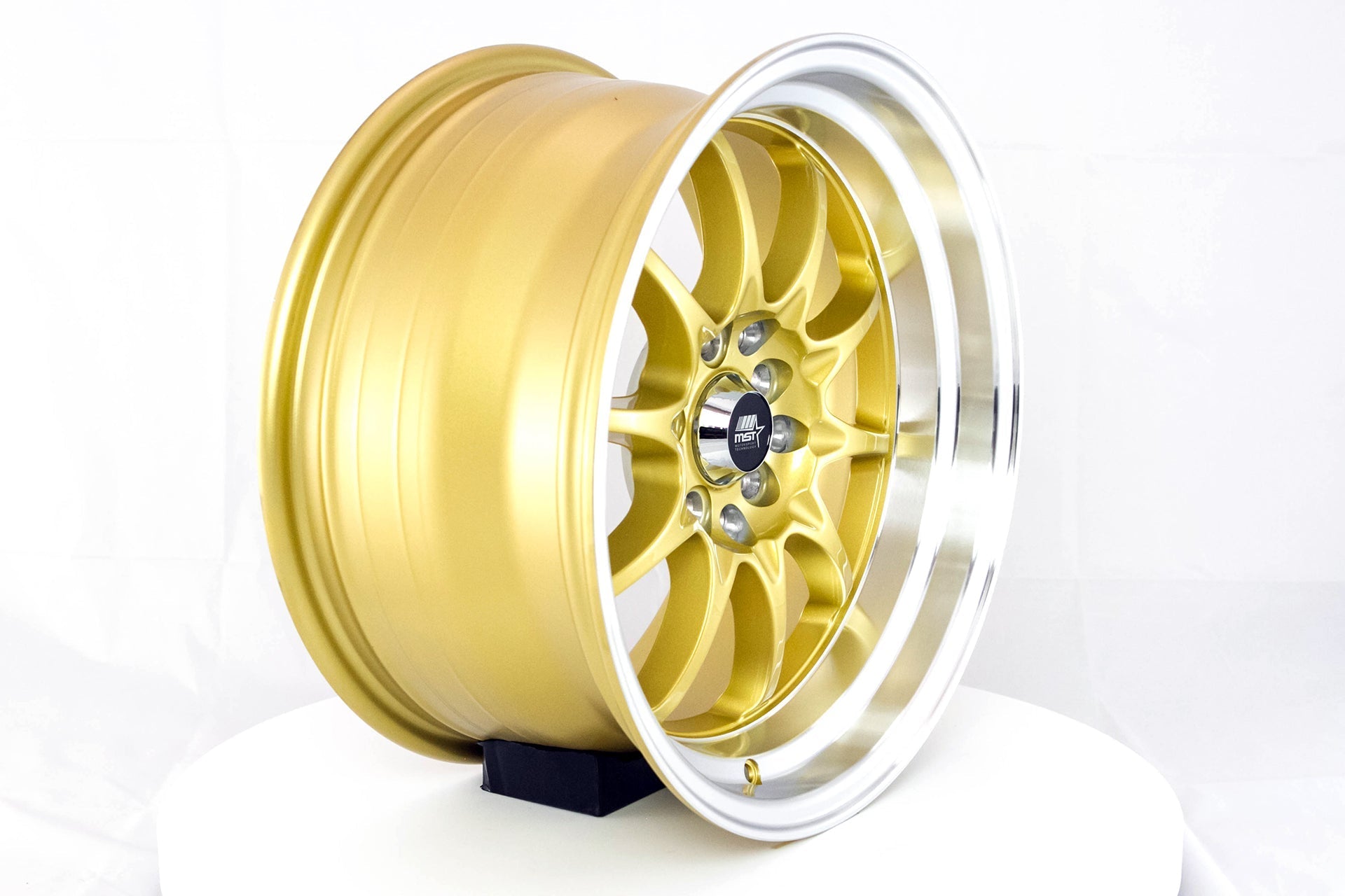 5x100/5x114.3 16x8 +15mm MT11 in Gold w/ Machined Lip by MST Wheels