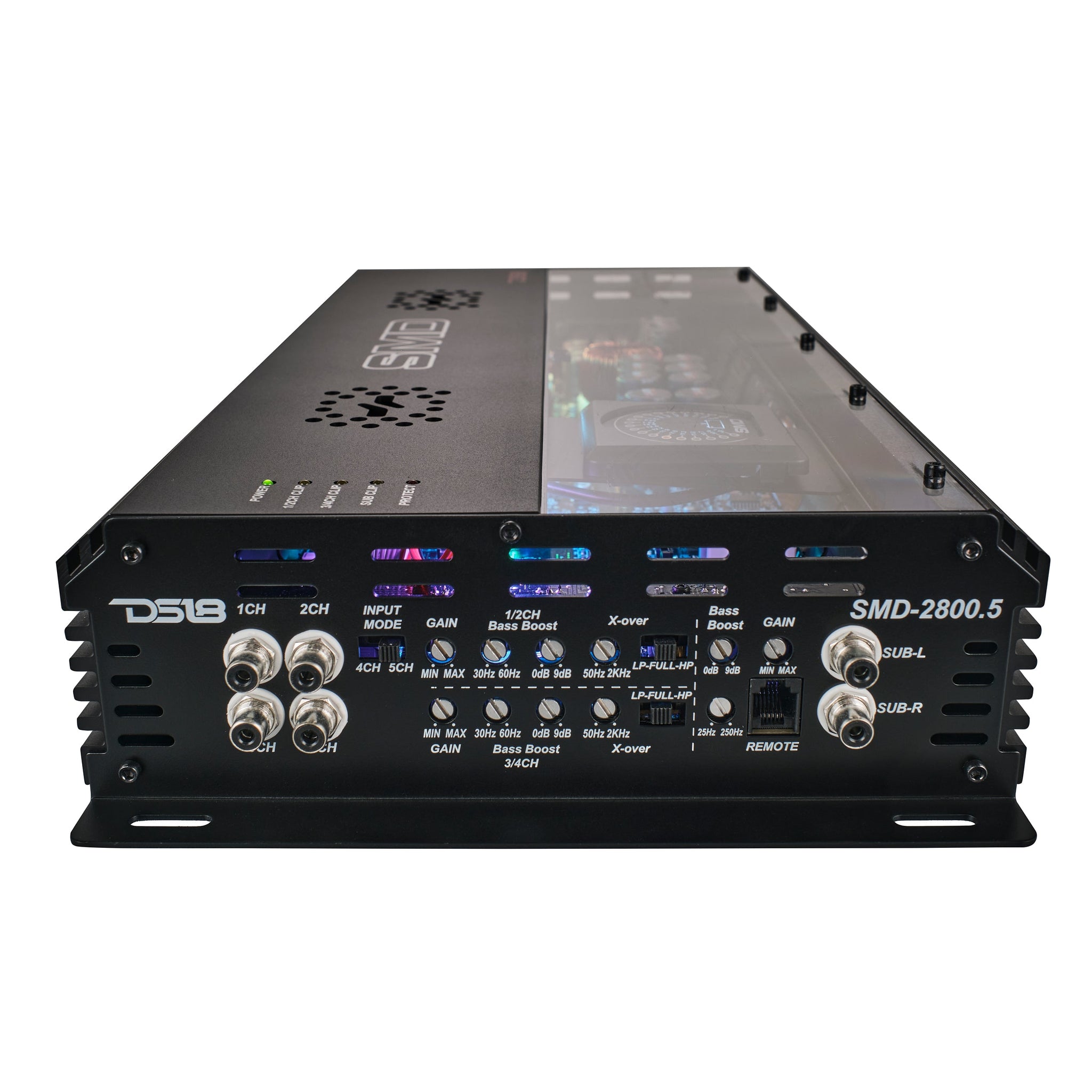 Crafted with precision using only the best components, DS18’s SMD-2800.5 is a full-range and subwoofer amplifier capable of powering anything—from subs and tweeters to midbass vocals and any front, rear, and subwoofer combination of speakers. Its advanced protection suite includes thermal overload, DC output, short circuit, and voltage input protection, ensuring safe operation in any setup.