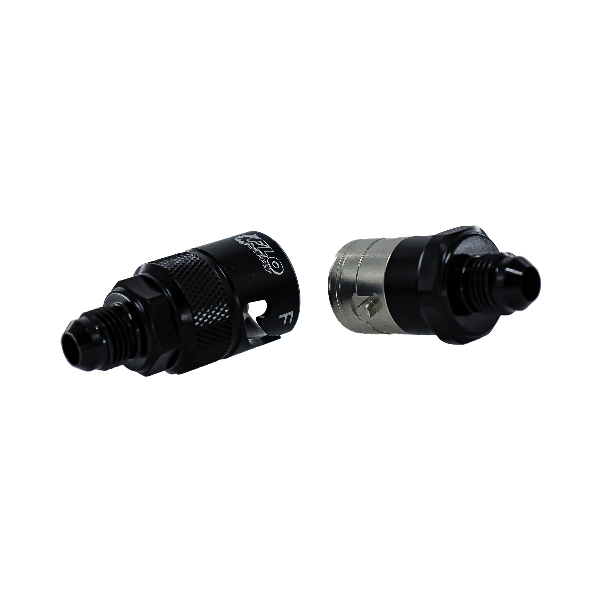 Shave valuable seconds off your pit time with Flo Supply Fuel Line Quick Disconnect Fittings. Also known as dry break fittings, these precision-machined adapters install inline and allow for fast, clean disconnection of fuel, oil or even coolant lines—no tools required, and without losing fluid! Simply push and separate to disconnect. Designed for high-pressure racing environments, they help you service components quickly and get back in the race without skipping a beat.
