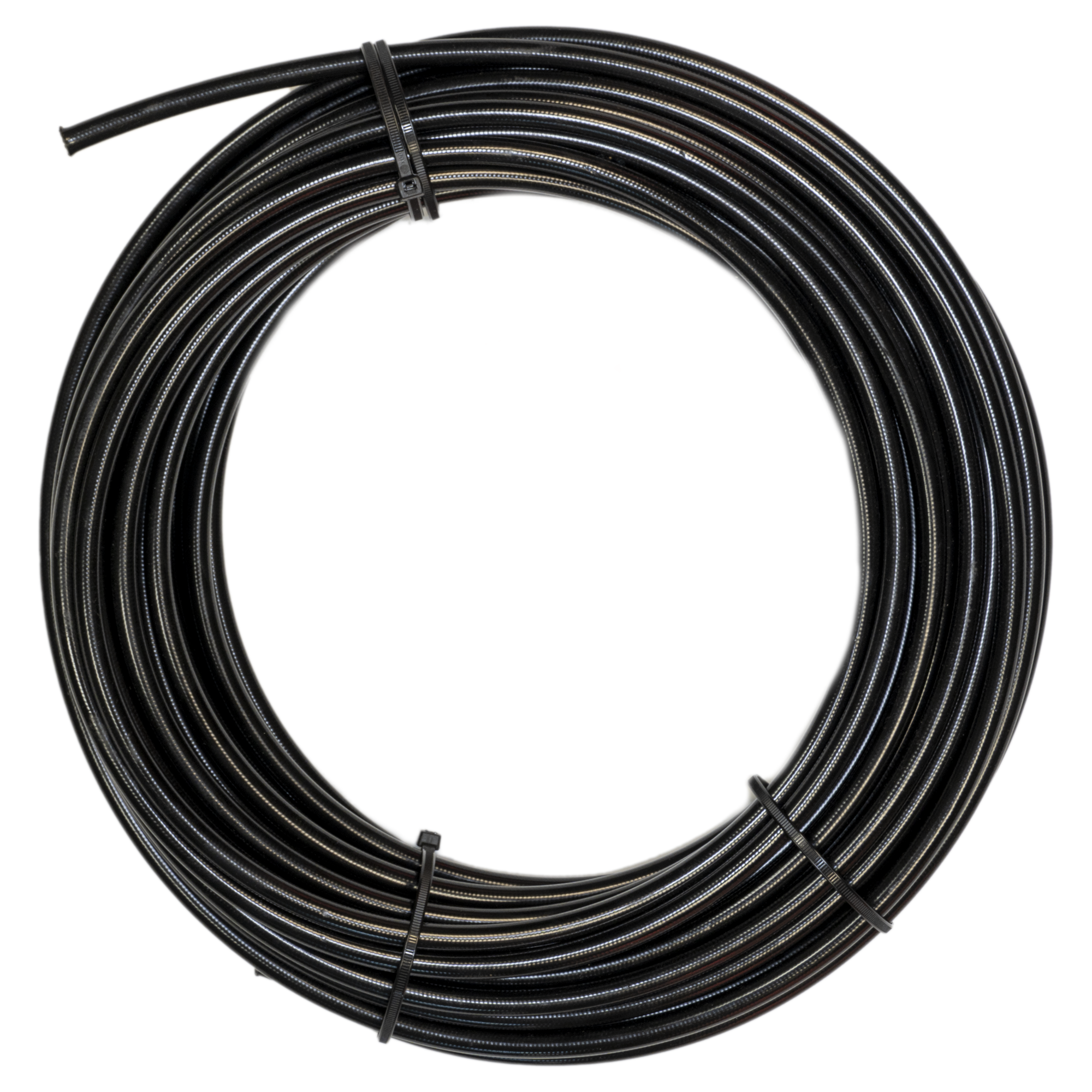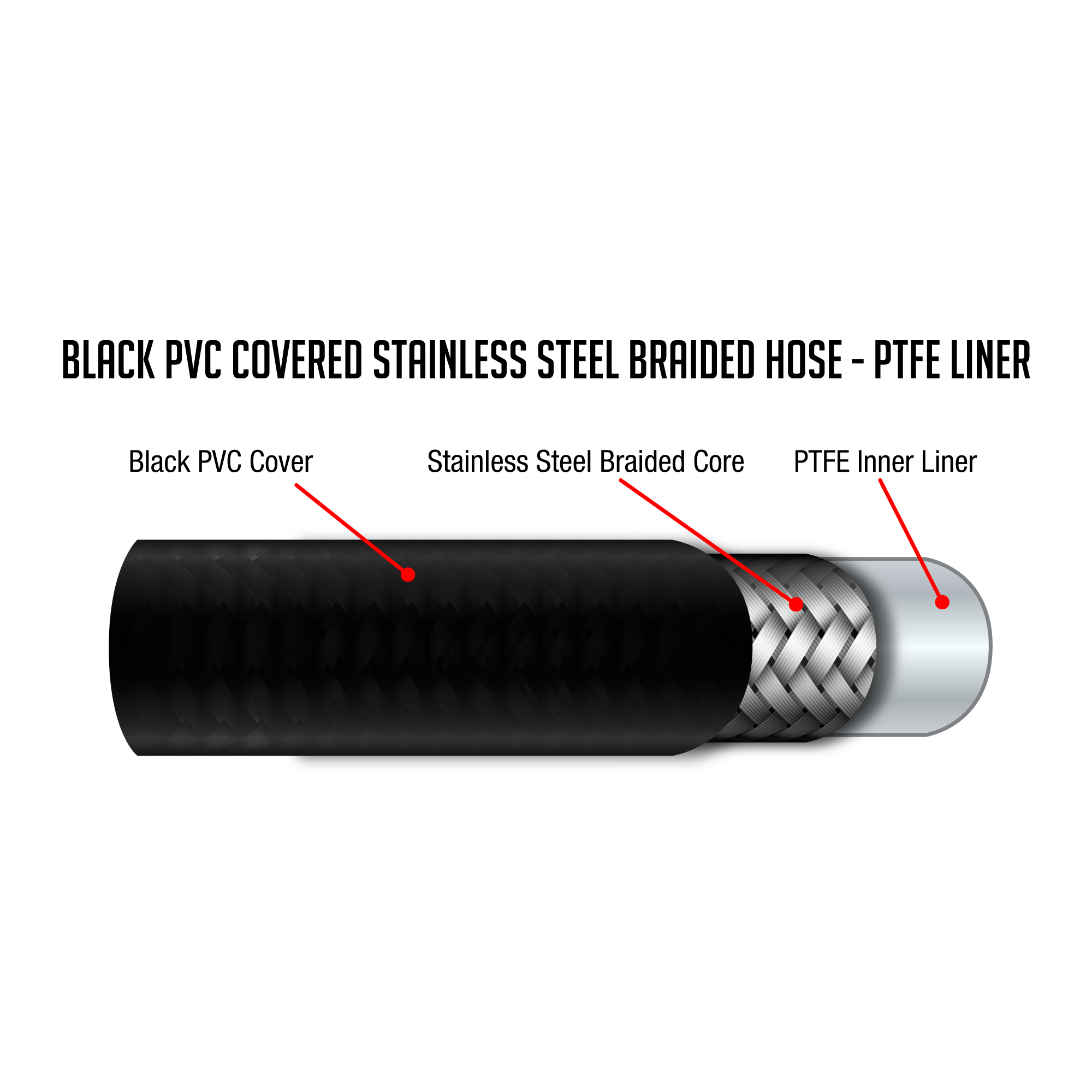 - Black PVC Outer Cover Over A Stainless Steel Braided Core With PTFE Inner Liner