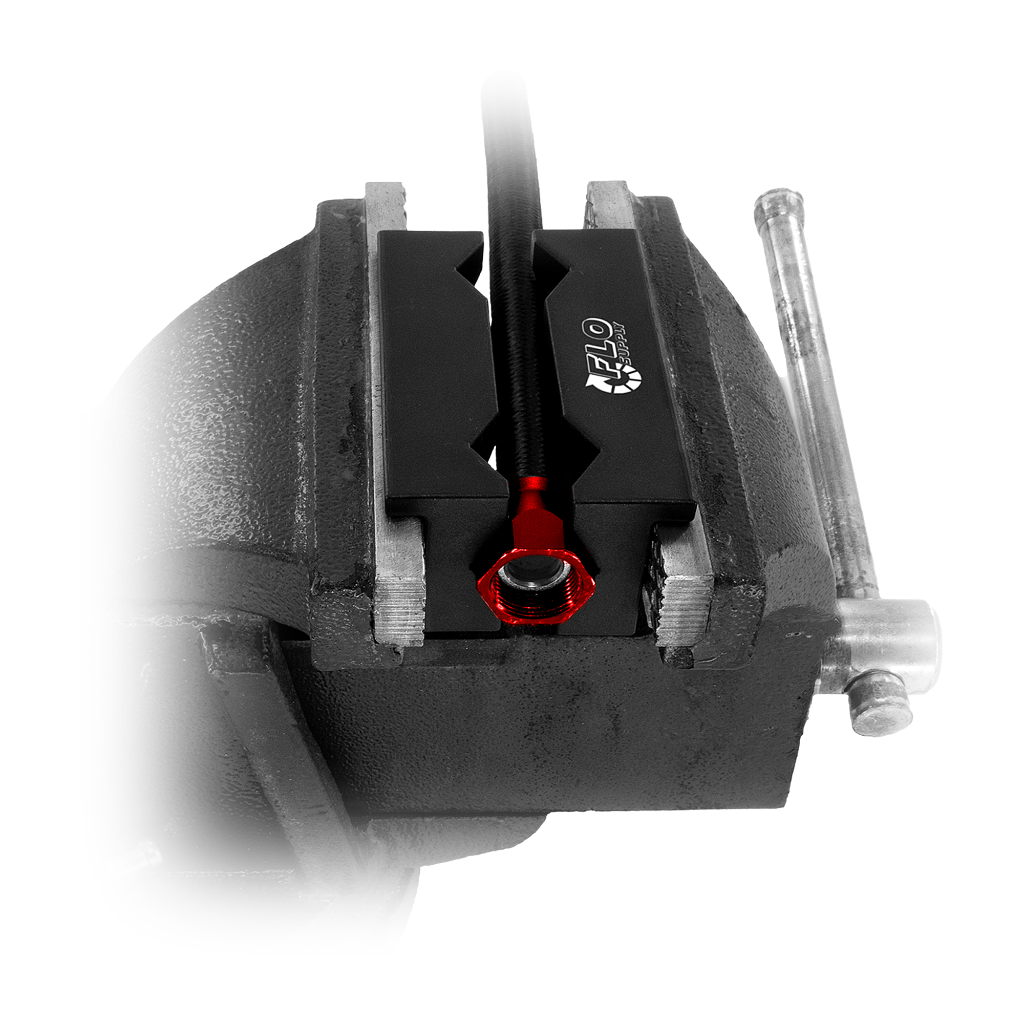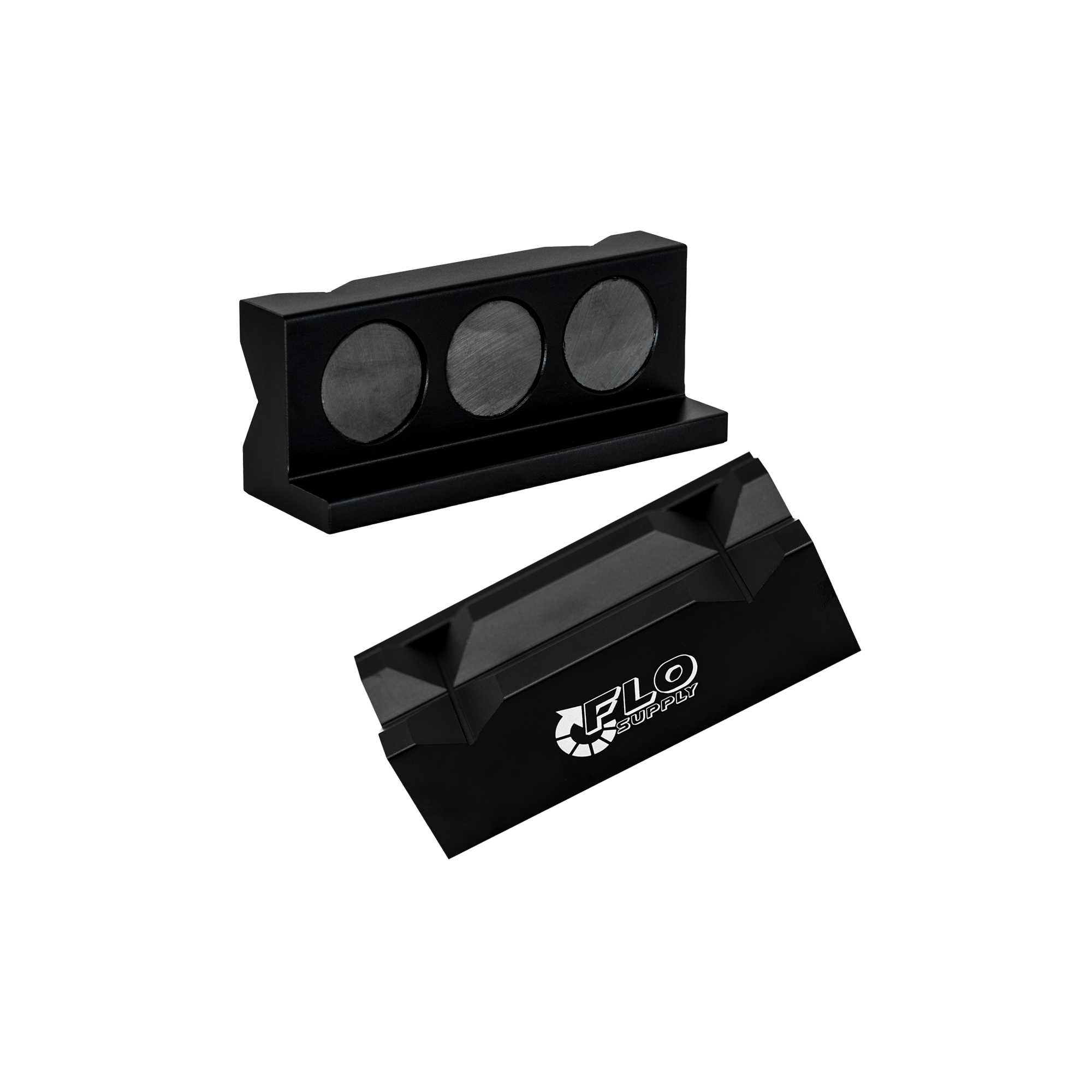 Flo Supply Billet Vice Jaws Provide firm clamping without damaging the hose ends anodized finish during assembly. These vice jaws have embedded magnetic inserts to hold in the vice making them trouble free.