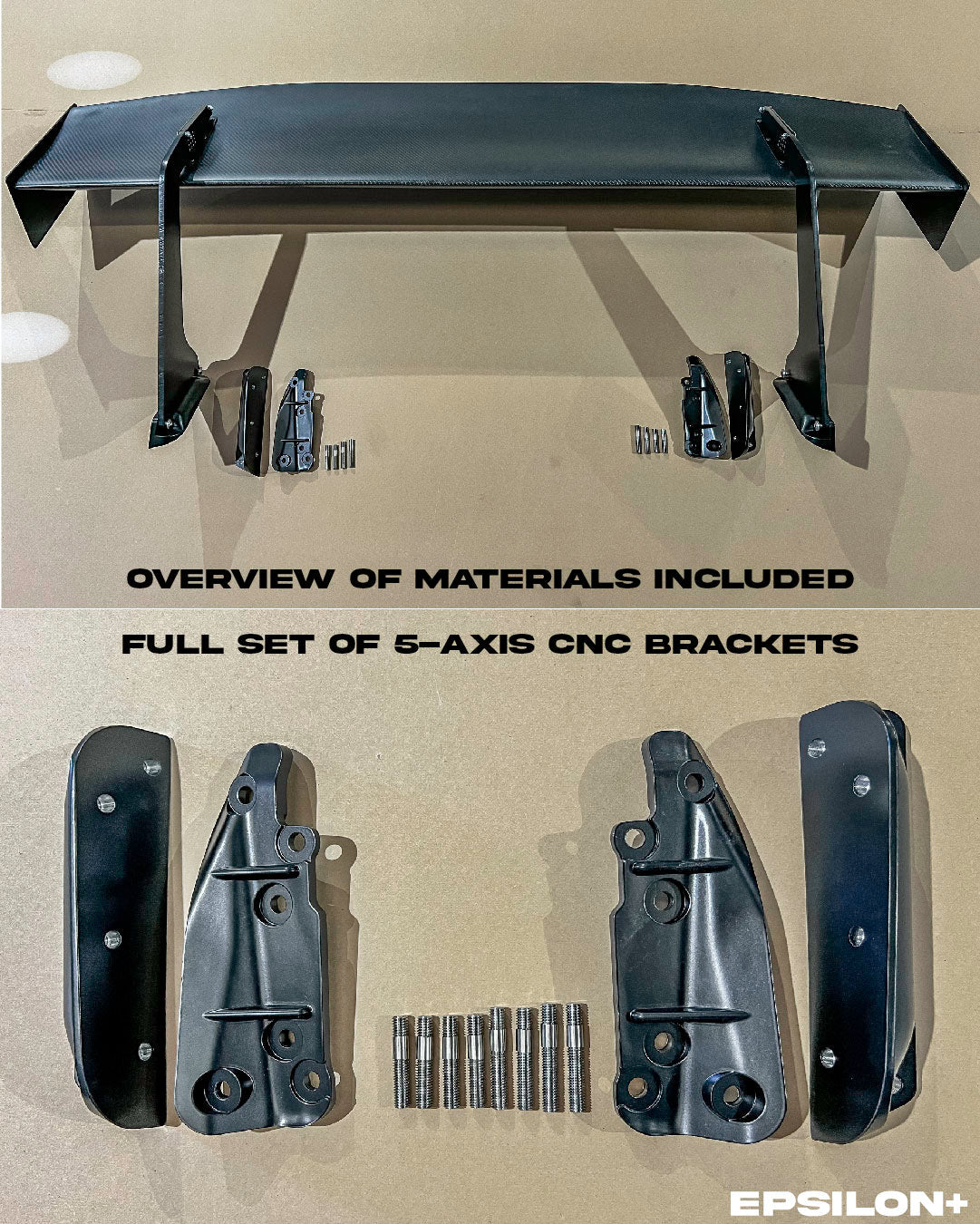 • Carbon fiber motorsport wings are optimized for weight, and come in a matte finish from manufacturing. If you are planning on a lot of outdoor use, consider applying clear coat to maximize the service life of the top coating.