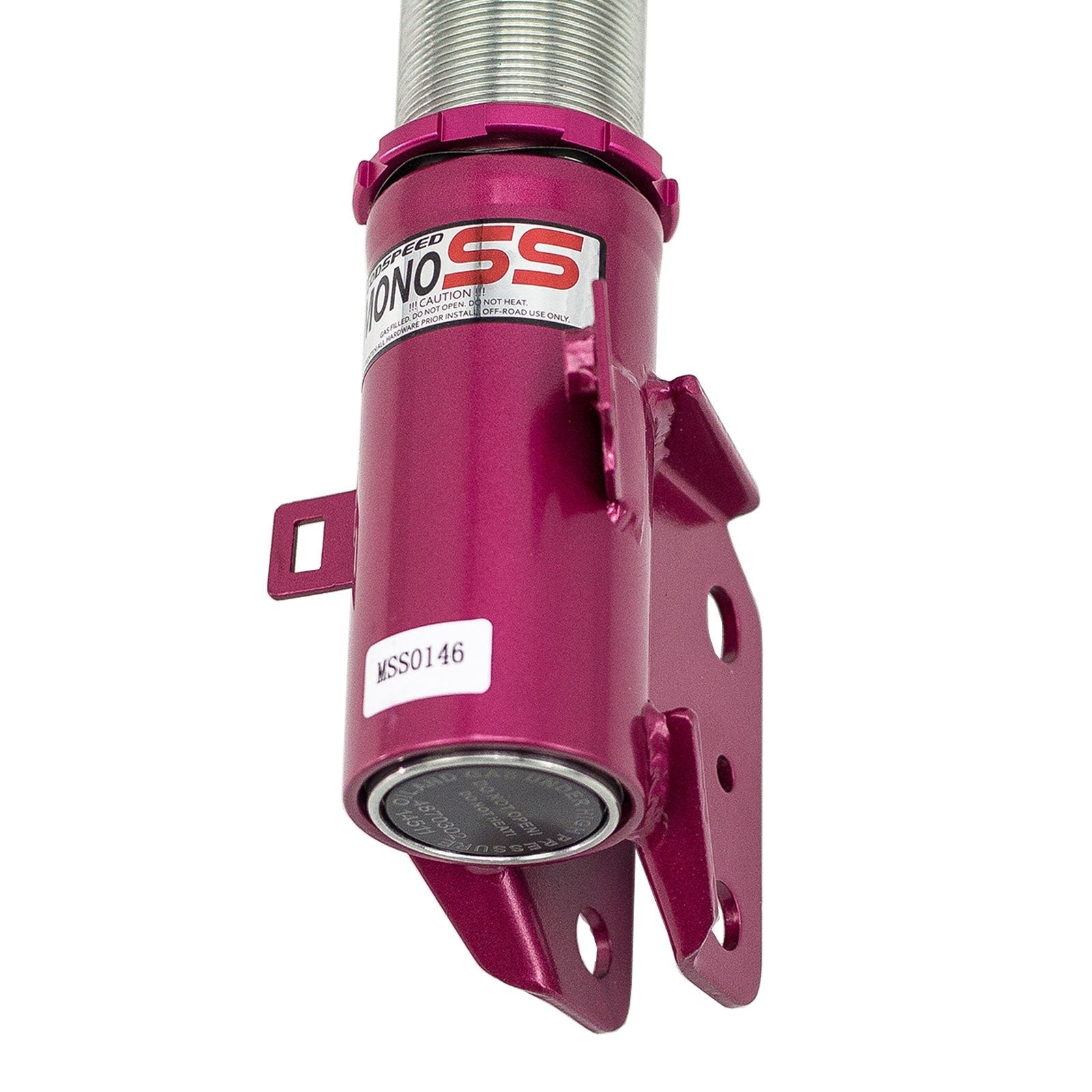 GodSpeed MonoSS coilovers are great entry level single adjustable coilovers. GodSpeed starts with a race coilover and tones it down for the street to give you an extremely capable coilover that you can comfortably use every day. GodSpeed uses some of the best and most exotic components on the market such as a carbon seamless steel 52mm tube with a high performance internal shock piston that provides fast and precise damper response. GodSpeed coilover springs are cold-bent from high strength SAE9252 steel to be comfortable and high performance.